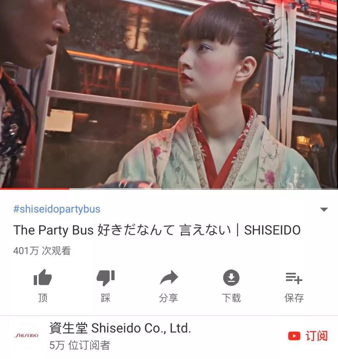 《派对巴士》这支广告视频不仅加入了万圣节化妆cosplay的元素,更将目标瞄准了这些人群。同时,女生与女生之间浪漫的爱情表达出资生堂品牌更开放、包容的态度,和对LGBT(同性恋、双性恋或跨性别族群)群体的友好。