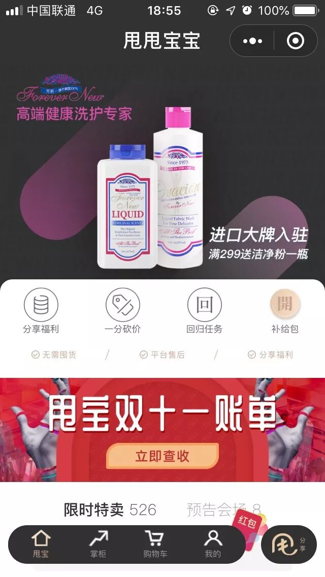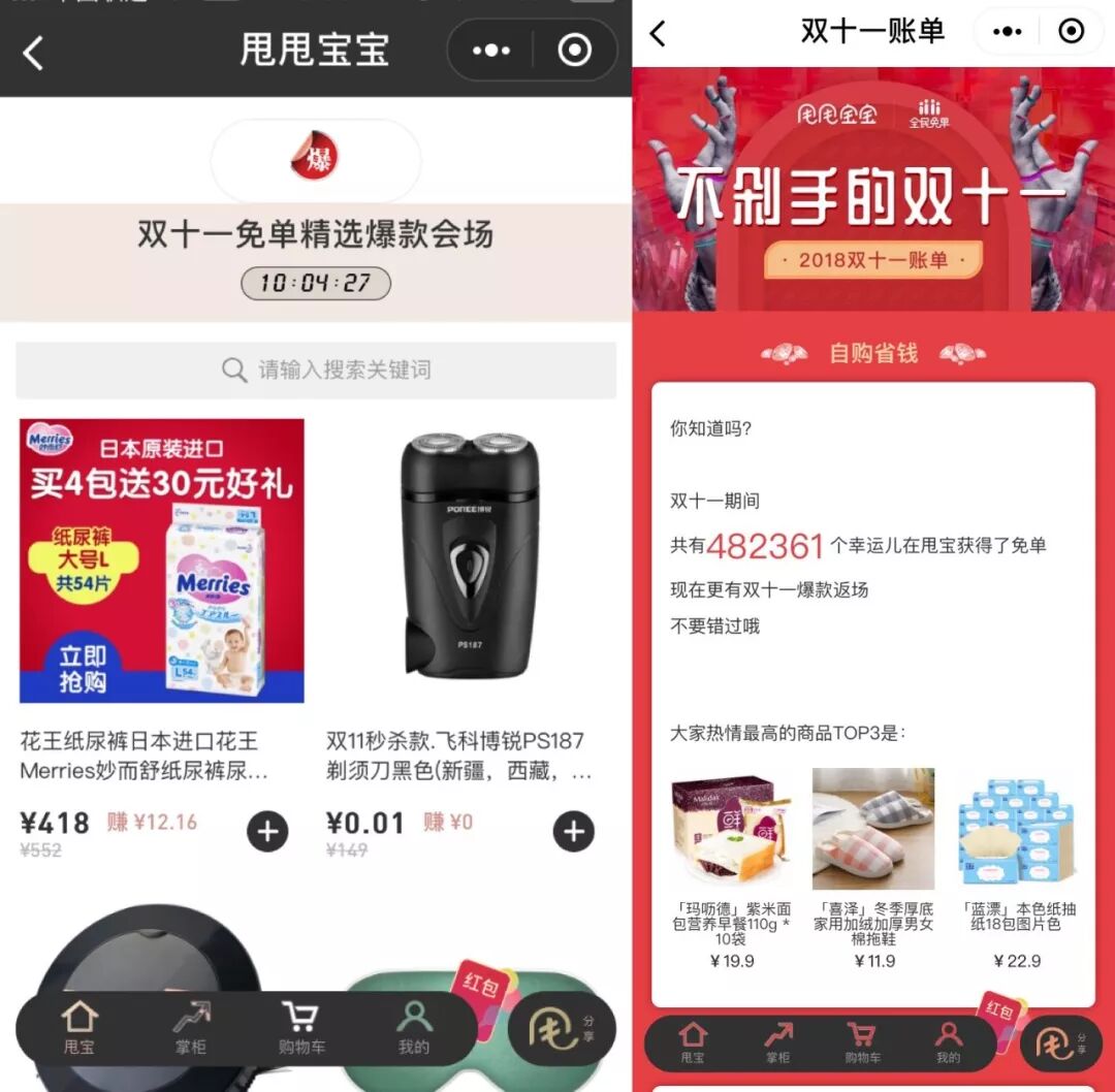 名不见经传的“甩甩宝宝”在双十一的前一天就成为小程序圈子里的热门话题。11月10日,成立4个月的“甩甩宝宝”公布了双十一预售成绩单:100万个微信群和1000万次分享,达成超1亿交易额。