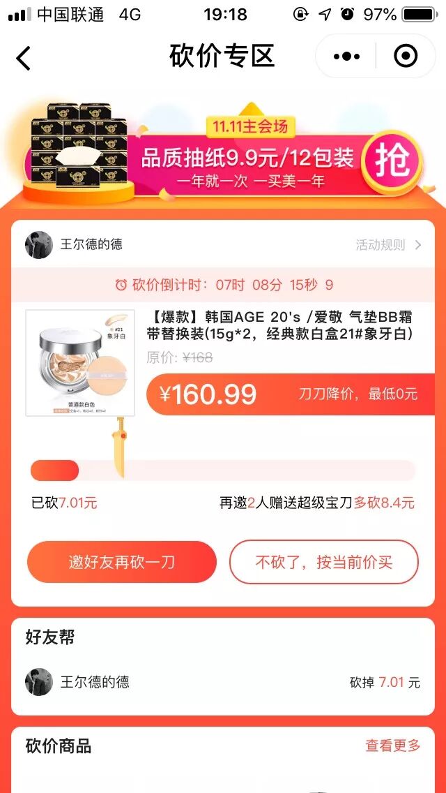 而在砍价上,也采用了类似拼多多的玩法。