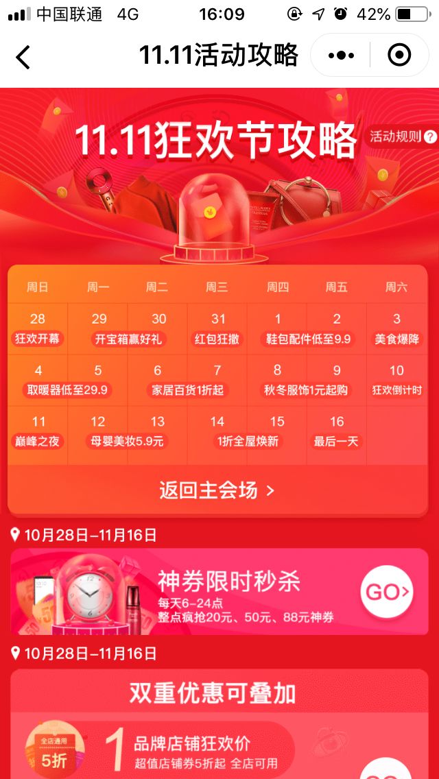 比如11月1号是鞋包的优惠日,11月3日则是美食。