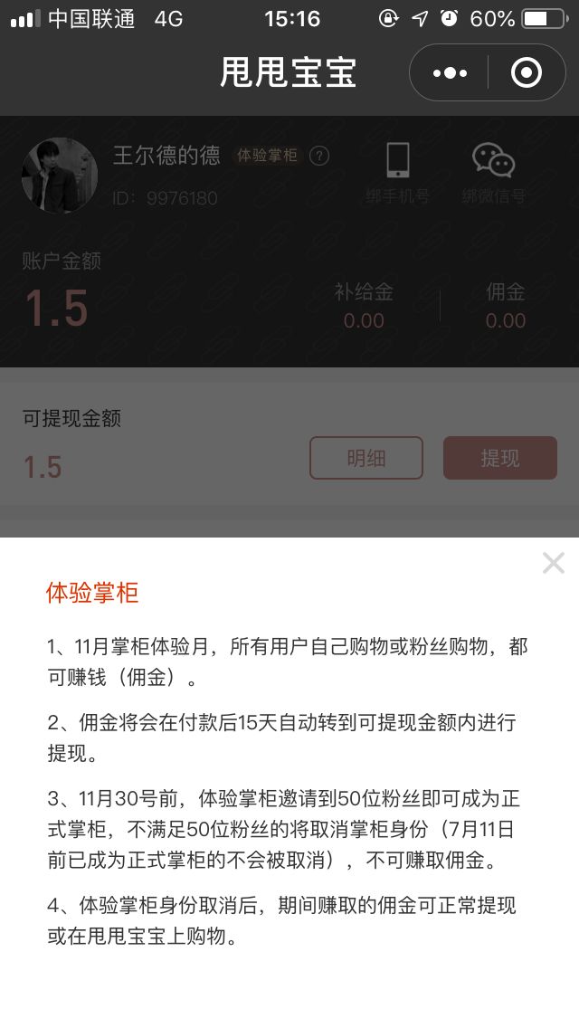 掌柜门槛:双十一期间,用户只要打开“甩甩宝宝”,就可以成为掌柜,整个11月都会有佣金。而只要有50个粉丝就永远是掌柜。