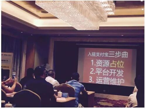稍坐,会议开始。一位被贴上“北大光华管理学院”标签的讲师走上台,为他们普及支付宝应用常识。
