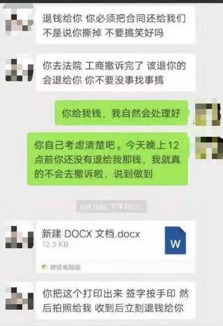 广州做时装生意的刘恋(化名)女士和自称腾讯代理开发机构签订了4万元“小程序合同”,她去了两次公安,在公安建议下,她又去了法院,“法院讲要回钱还是得通过工商部门,看能不能再多退些减少损失”,刘恋曾在工商调解下主动和公司提出先拿六成,但后来她又后悔了,才去法院起诉。对方公司要求她在法院撤诉,“不要没事找事”,并发来一份协议书,让其打印出来、签字按手印然后拍照发过去,可退钱,60%。“后来工商打电话也要我去撤诉,说先拿六成算了,怕万一公司跑路,一分钱拿不到”。