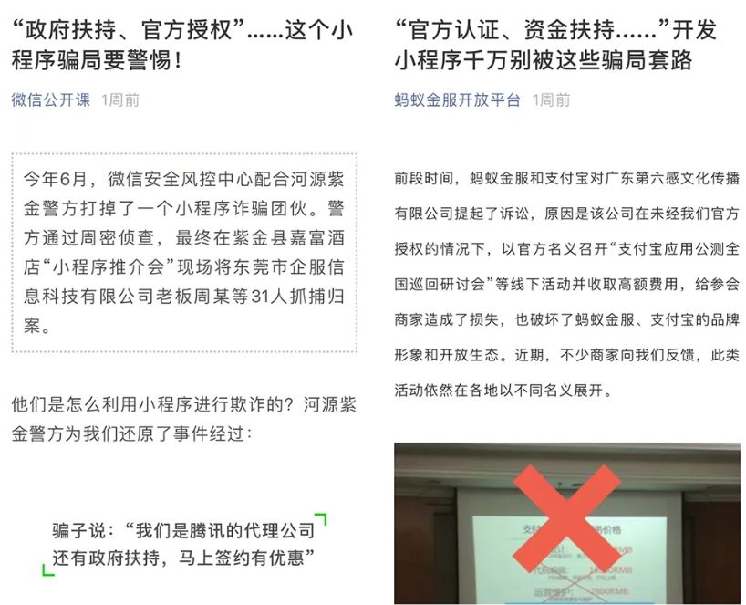 知晓程序发文前,新华社也同样联系到王先生,并在8月12日发表题为《百来块制作的小程序,竟敢要价几万元——多地“微信、支付宝”小程序骗局调查》的文章,文中提到小程序骗局正“由一二线向三四线城市扩散,取证维权难”。