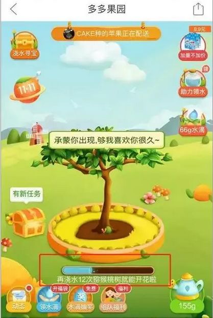 新榜讯 近期,拼多多推出“多多果园”小游戏,在朋友圈一度火热。这款种树的小游戏,通过浇水让树成长。当树成功结果以后,商家就会给你发一箱你种的水果。与拼多多类似,口碑推出的“口碑农场”同样非常火爆。