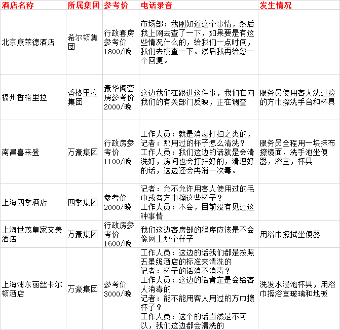 今早08:09新京报发布视频,对六家涉及酒店进行了采访,均表示不允许类似情况发生,但具体情况需要核实后再做出回复。