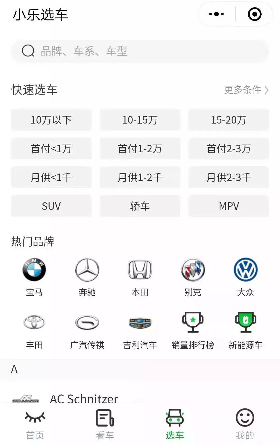 旗下小程序“小乐选车”以小程序为入口,依托微信生态流量,为消费者提供看车、选车、购车、金融、保险、提车一站式服务。