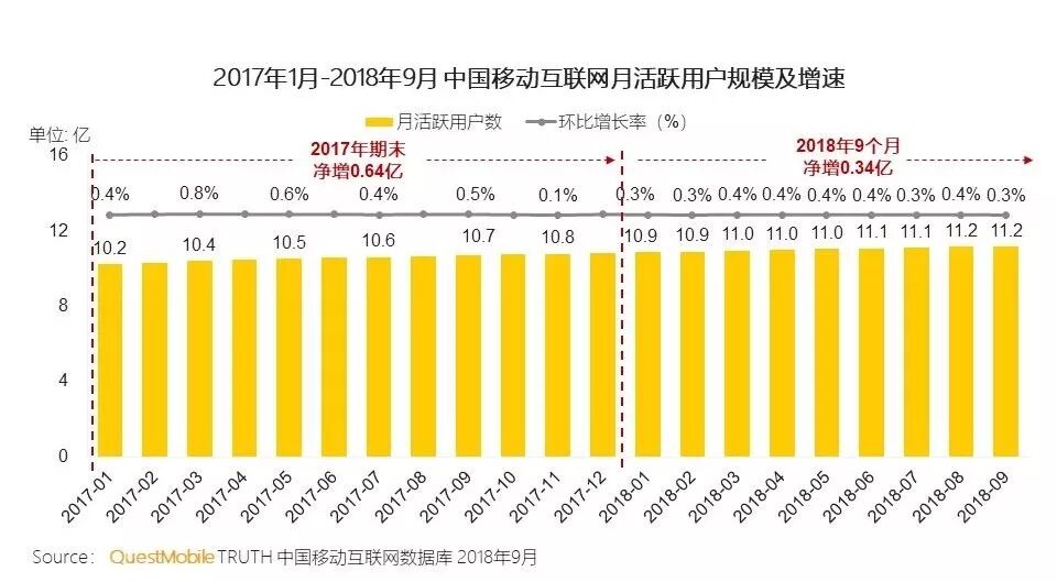 QuestMobile秋季报告显示,中国移动互联网活跃用户规模增速同比降低超50%,9月总活跃用户规模达11.2亿,逼近饱和。这意味着,已经很难有新的流量增长,白发或低龄人口增长也将陷入停滞。