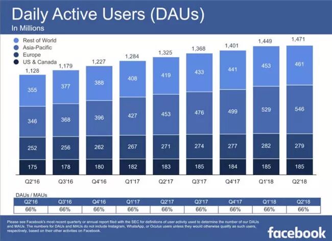 Facebook日活用户增长情况:北美地区已陷入停滞状态