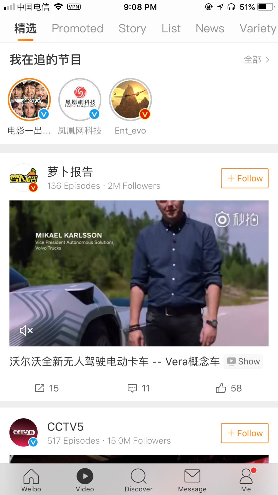 微博在9月初的灰度测试,下方增加视频tab