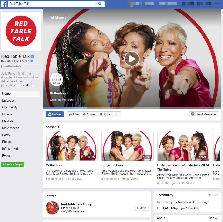 《Red Table Talk》的Facebook Watch主页