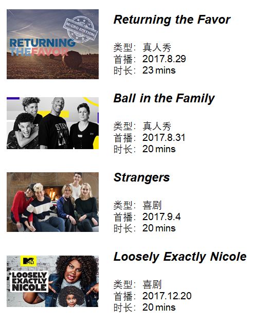 2017年,Facebook Watch年终盘点时设定了一项指标:如果剧集主页粉丝的10%看完了所有视频,那这部剧就是成功的,Facebook会和成功的剧集出品方续签下一季。当年通过这项指标的剧集共4部,分别是Returning the Favor、Ball in the Family、Loosely Exactly Nicole和Strangers,平均时长超过20分钟。