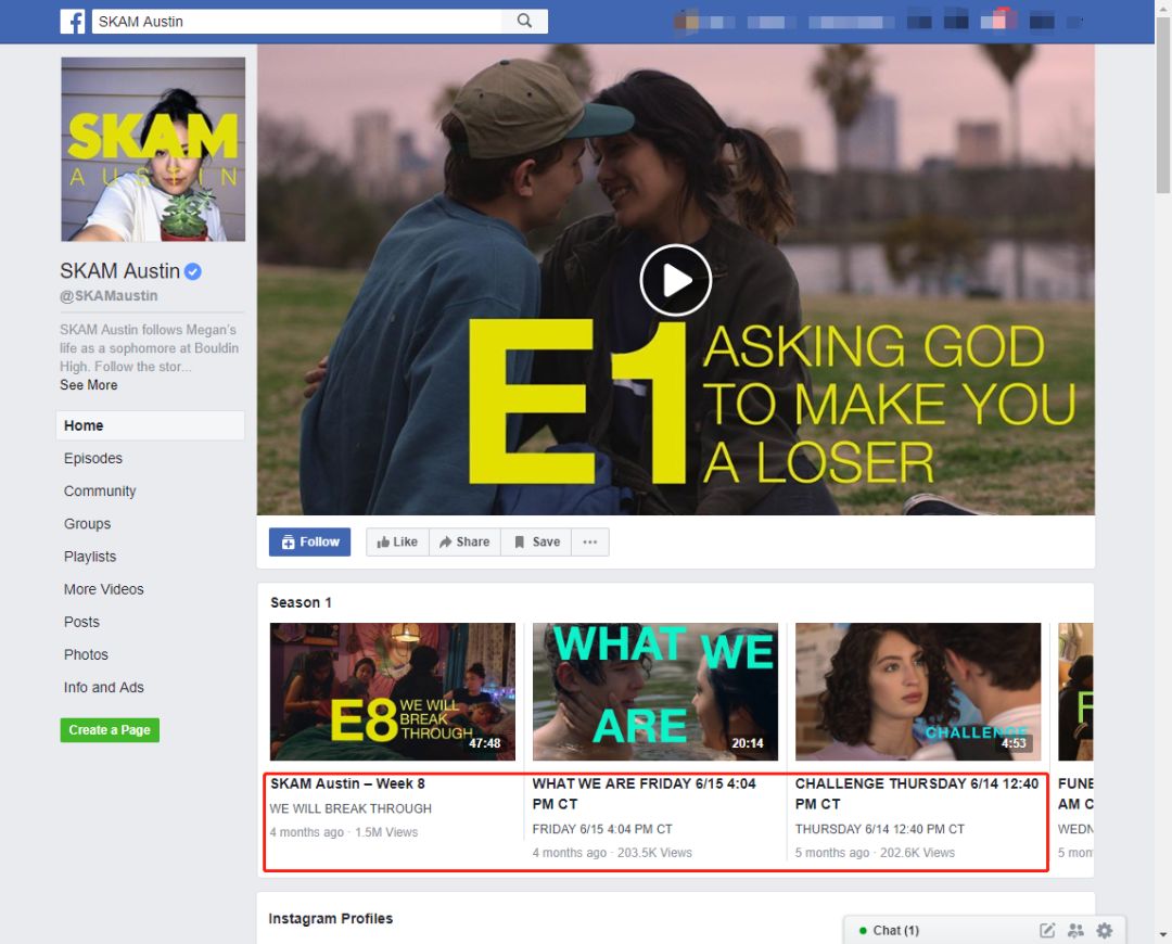 在Facebook看来,大量剧集买入导致了流量分流,不如减少剧集,用优质内容获得高粘性用户。所谓Bigger budget, fewer shows(少剧多资),但更有社交属性。比如翻拍自挪威剧的同名短剧《Skam:Austin(羞耻:奥斯汀)》,主演在Facebook上每日更新动态,主页则会放出当日片段,到周末时则播出完整剧集。