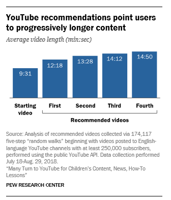 此前皮尤研究院发布的报告表明,YouTube算法正在培养用户的“长视频观看习惯”。如数字娱乐公司Whistle Sports的社群增长总监乔希·格兰博总结:因为平台需要“有意义”的观看,即单位观看量能产生的最大盈利。数字娱乐公司Kin Community内容战略副总裁格温·米勒摸索出规律:10-16分钟是YouTube最“喜欢”的时长,因为有更多广告空间。
