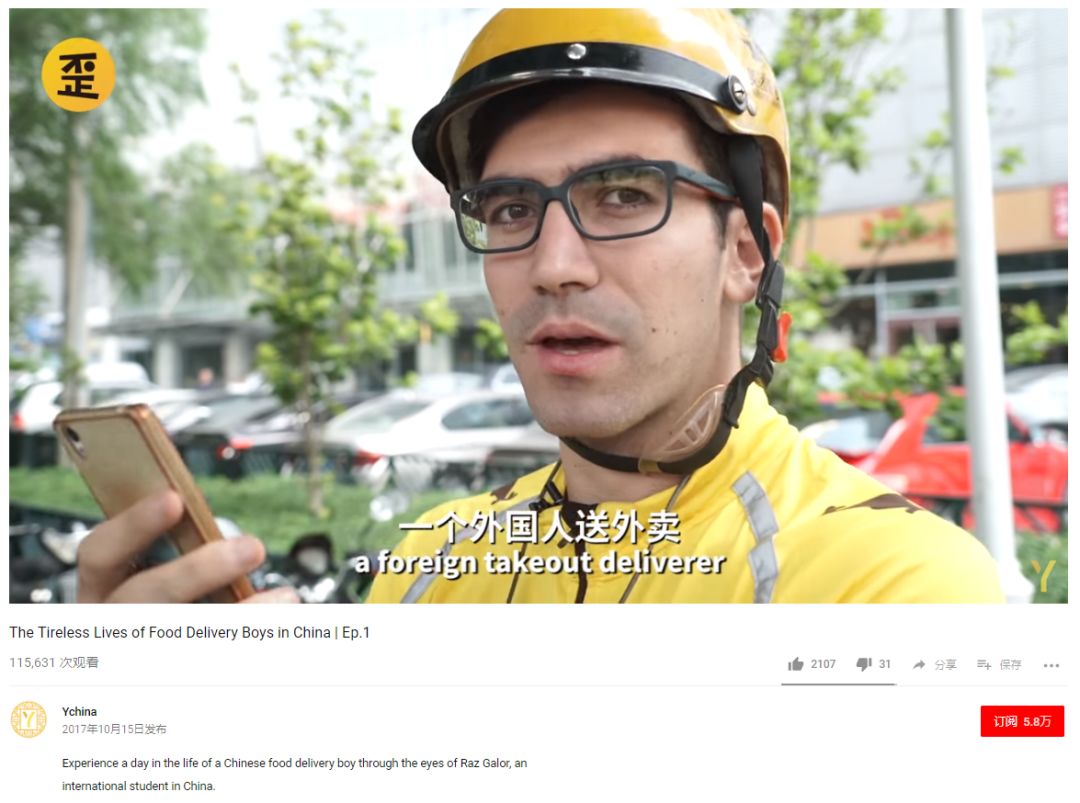 在更难积累粉丝的YouTube上,歪研会一期时长10分钟的节目《别见外:我在中国送外卖》,为主页带来一万多粉丝量,几乎是总粉丝数的1/5,尽管这集视频播放量甚至无法进入Top 10。