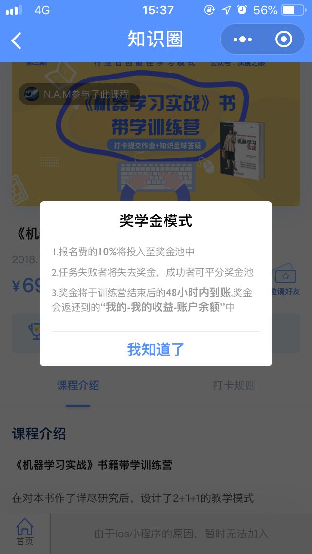 「知识圈」最初的“奖学金打卡”也是同样的思路,报课时将一部分报名费用放入奖金池,最后完课后一起平分奖金池里面的奖金。学习本身是一件枯燥的事情,平台需要用这样的奖励来增强用户活跃性。