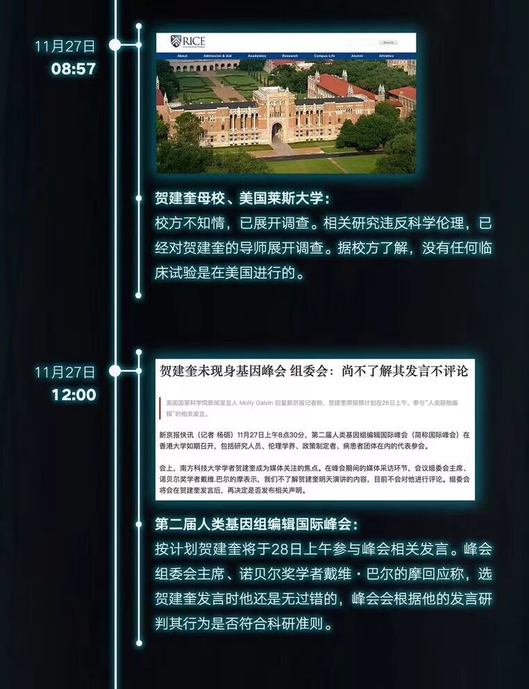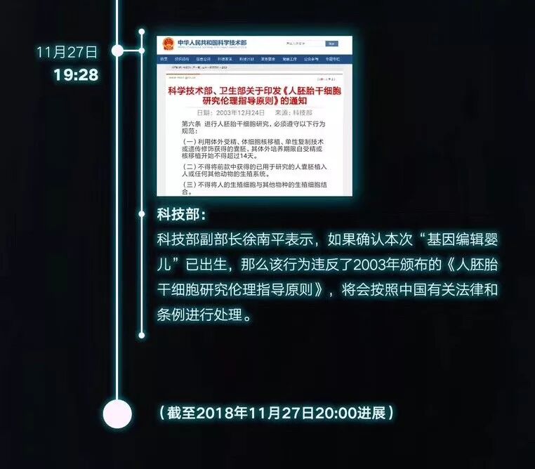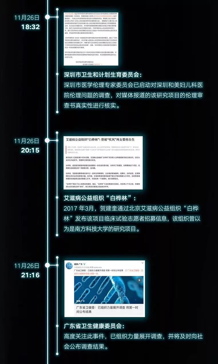 如果你还不知道“全球首例免疫艾滋病基因编辑婴儿”进行到哪一步,可以先查看「新京报-我们视频」整理的时间线长图(11月26日-27日)