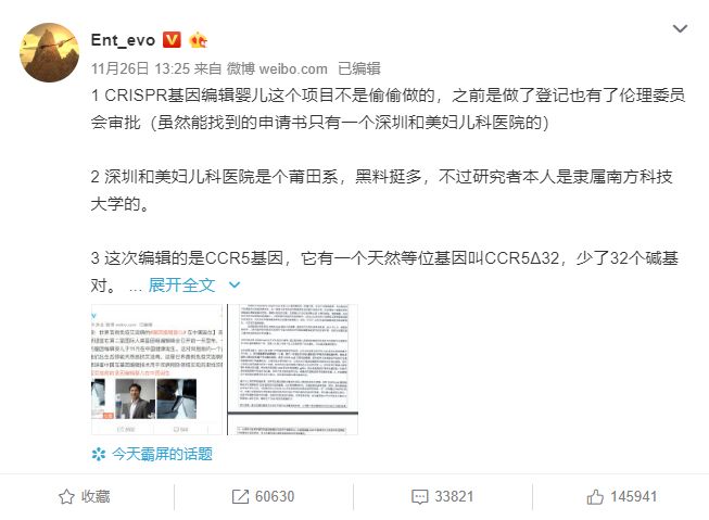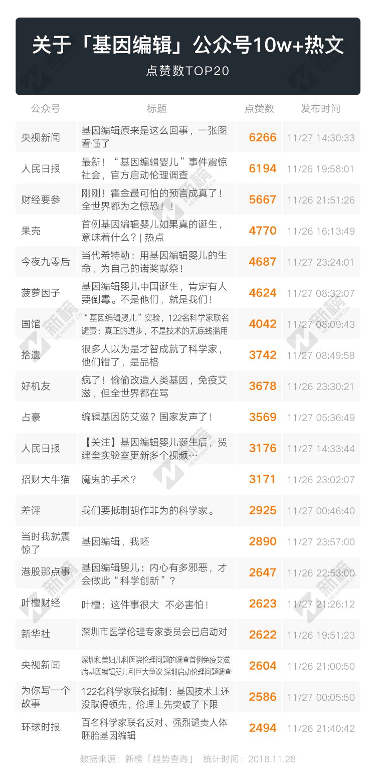 「基因编辑」事件热文(截止时间:11月28日中午12:00)