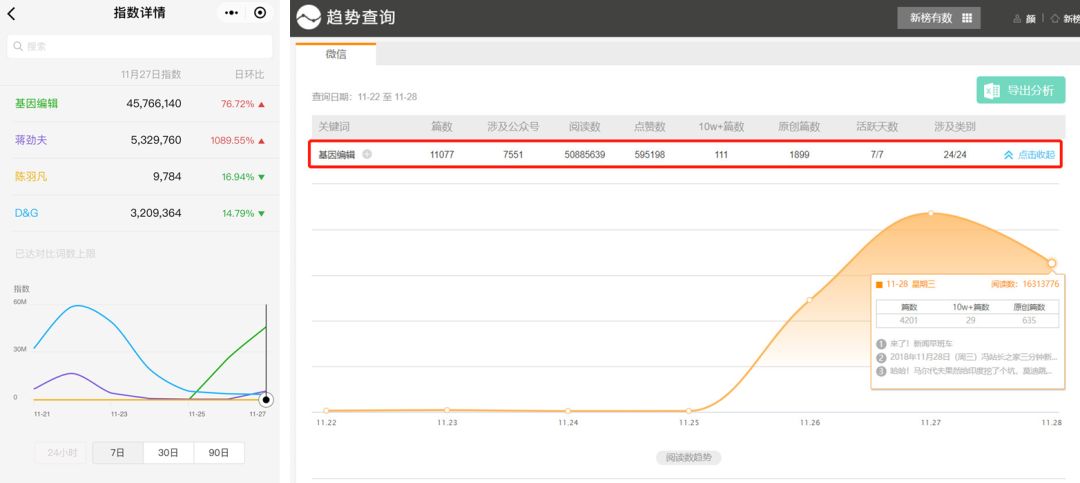 左:微信指数 右:微信公号趋势