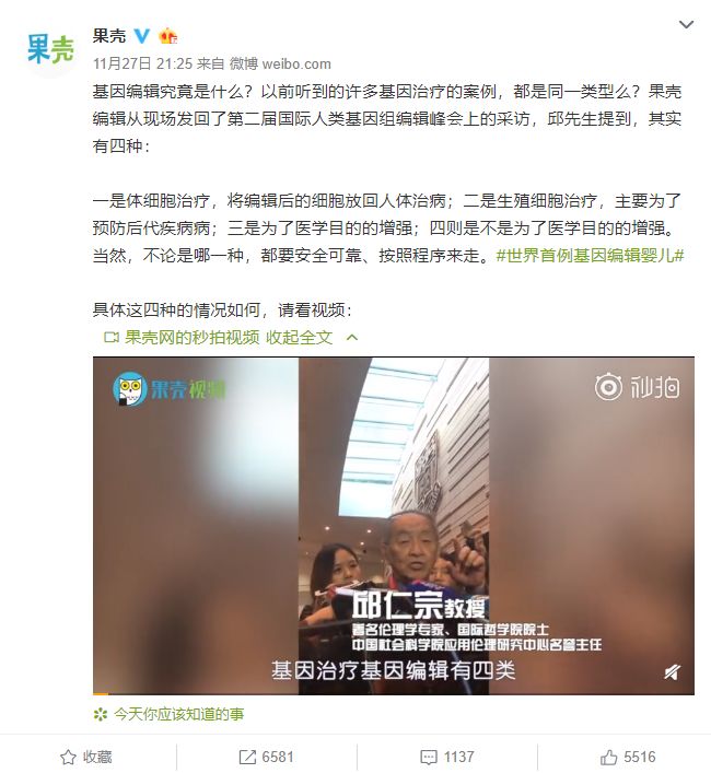 「果壳」微博一直密切关注基因编辑峰会