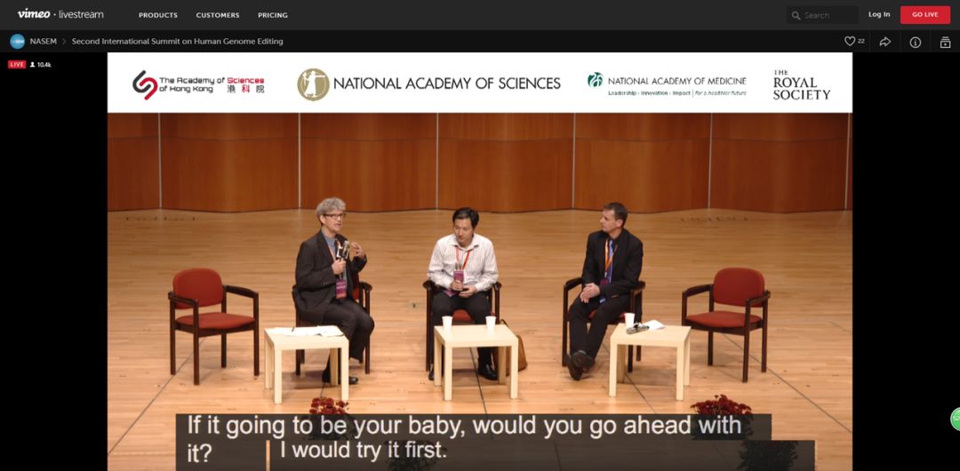 昨日,事件当事人、南科大副教授贺建奎现身香港,出席“第二届国际人类基因组编辑峰会”。在直播平台Vimeo,观看人数从1000人(11:30分会场开始)增至增至10500人(13:40贺建奎演讲结束),还有10万人在B站观看。(全程记录可阅读「果壳」的发布的资料整理和专家答疑《贺建奎的“基因编辑婴儿”是一项突破吗?不,可能是倒退》)