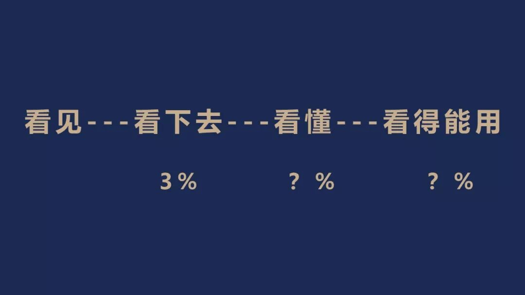 即便在线上,今天能够被看见的公众微信号比例也差不多,再好的内容,能看下去也就3%,这就是内容生产的幸存率。