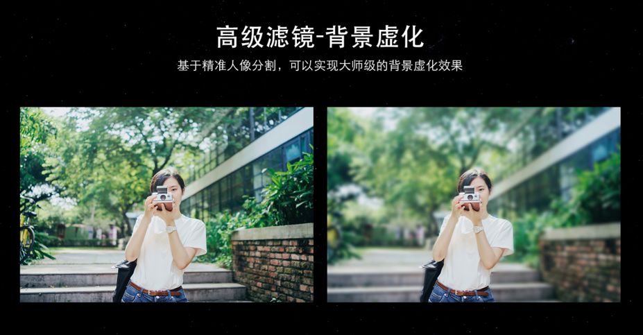这是景深模糊,自动把你背后的背景变成景深的效果。