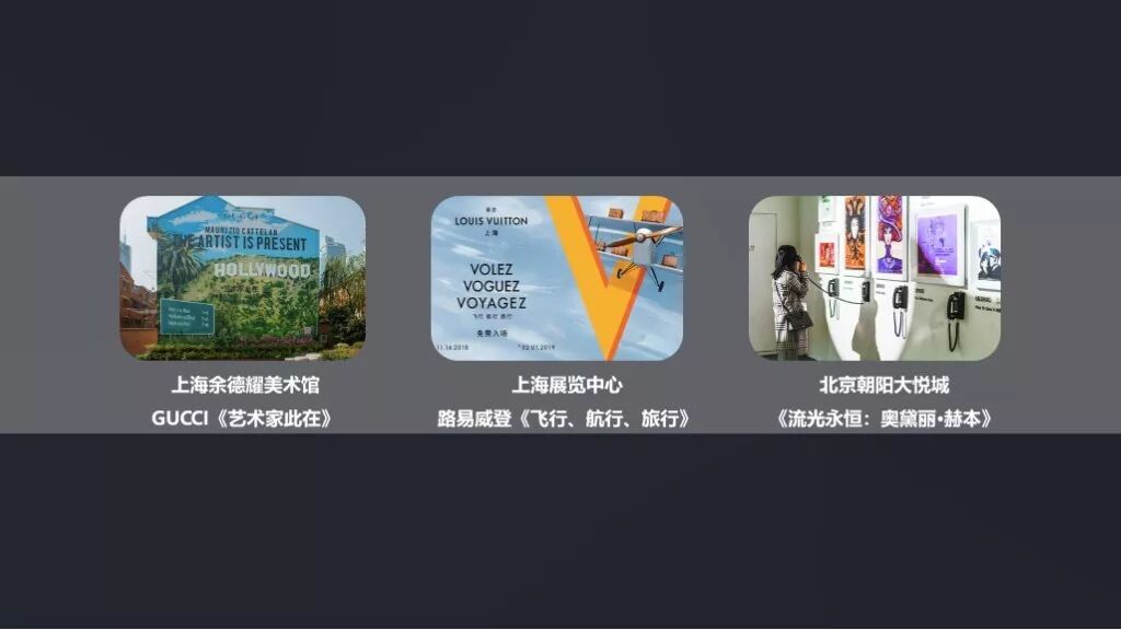 近月以来在上海最引起轰动的展览,他们无一例外是由奢侈品牌发起的,一个是GUCCI《艺术家此在》展,一个是LV《飞行、航行、旅行》展。据说余德耀美术馆还破了参展人数的历史记录。LV旅行大展也超出他们的预期,无论是社交分享、实际进场,还是品牌合作,各大城市的展览中心都希望给LV办展。《流光永恒:奥黛丽·赫本》展在北京朝阳大悦城已经成为文艺青年隐秘的暗号,这些现象告诉我们,没有知识快闪和艺术策展的商业空间在今天已经不成立了。