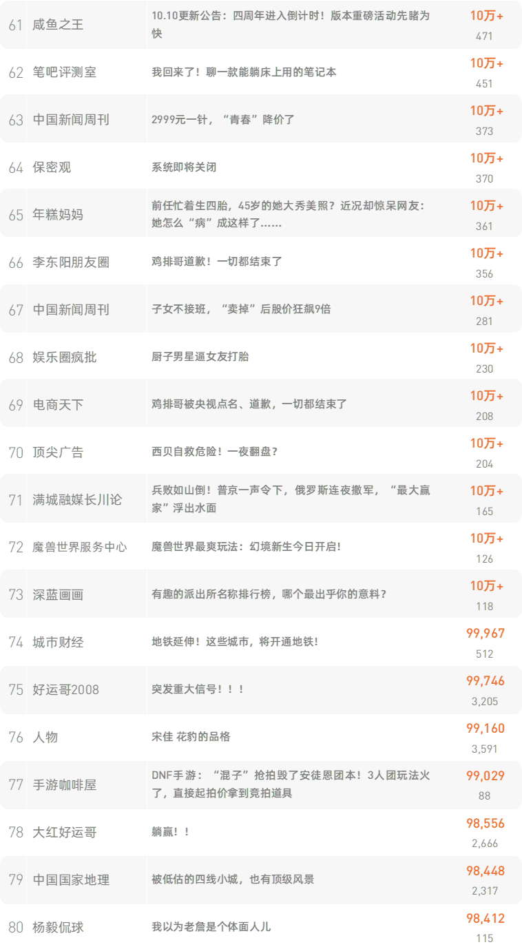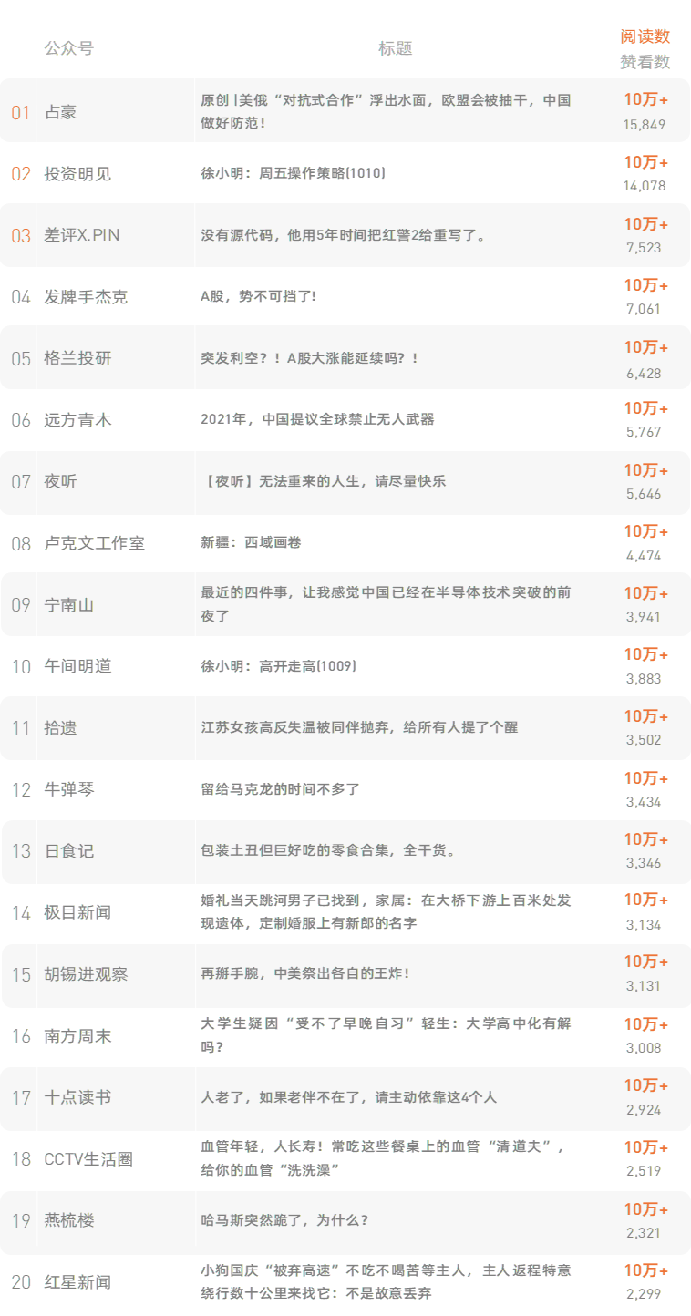 跳转原文请戳:最近的四件事,让我感觉中国已经在半导体技术突破的前夜了 新榜榜单小程序版正式上线,榜单想看就看,更多热门内容也可登录新榜网站www.newrank.cn进行查询,点击「阅读原文」查看新榜指数算法说明。 新榜排行榜 newranklist