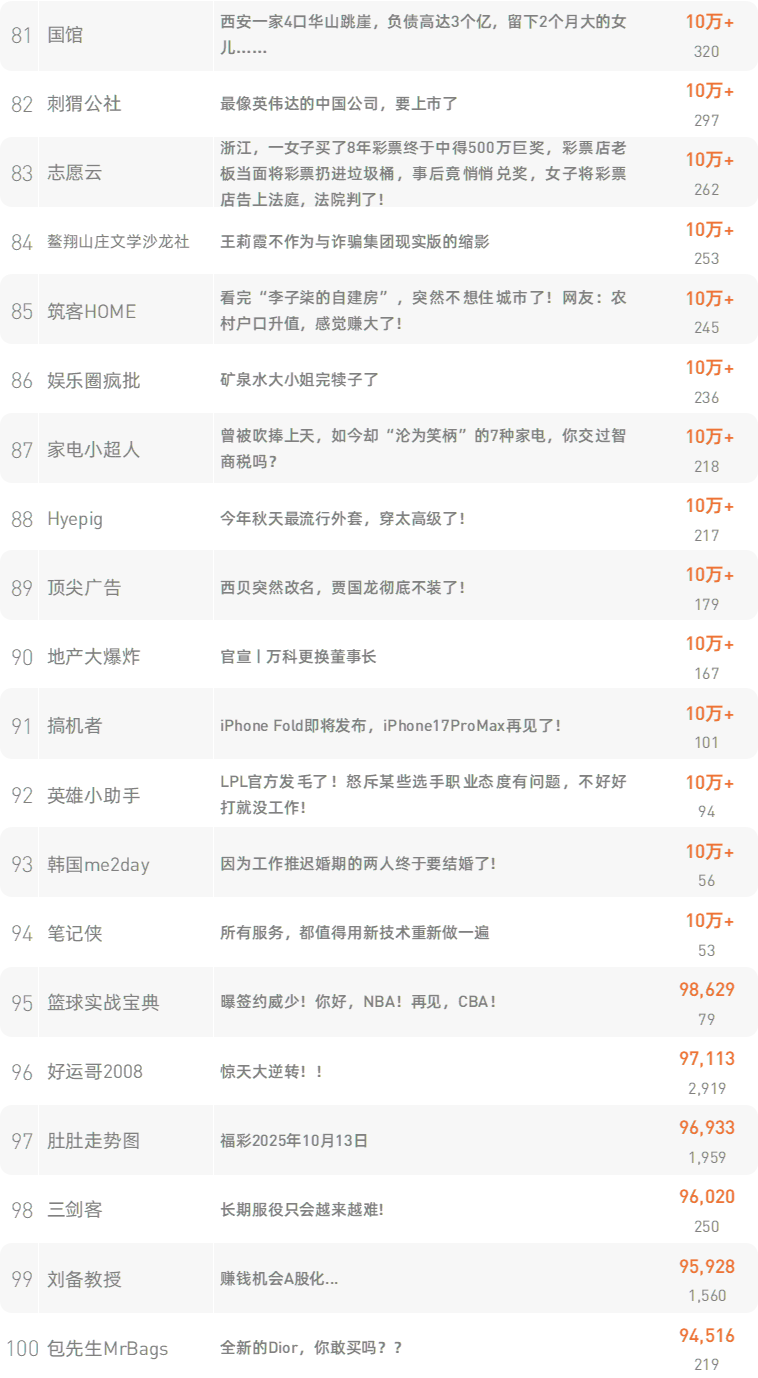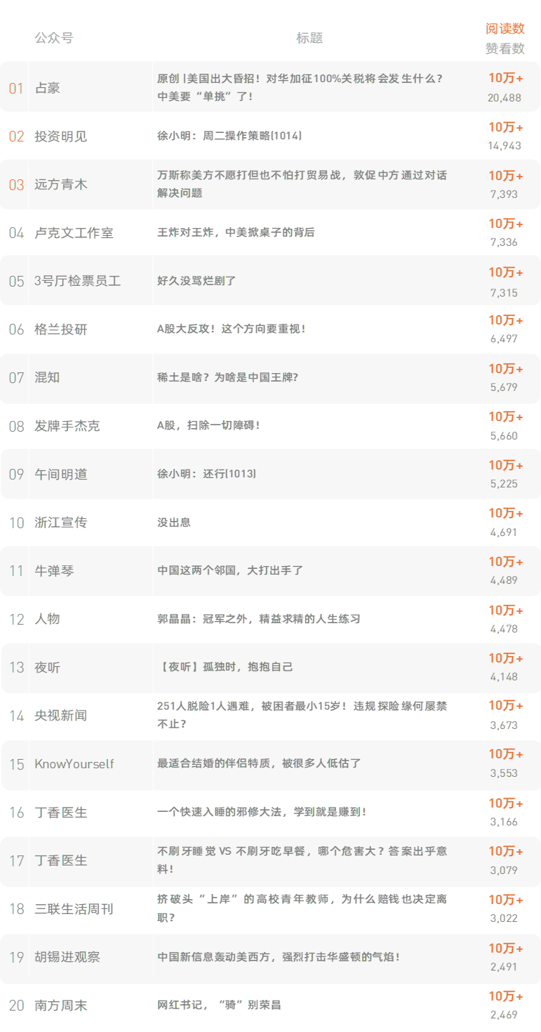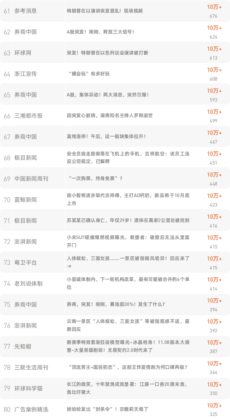 跳转原文请戳:《网红书记,“骑”别荣昌 》 新榜榜单小程序版正式上线,榜单想看就看,更多热门内容也可登录新榜网站www.newrank.cn进行查询,点击「阅读原文」查看新榜指数算法说明。 新榜排行榜 newranklist