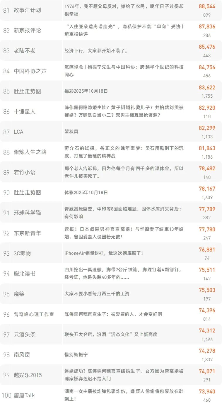 新榜榜单