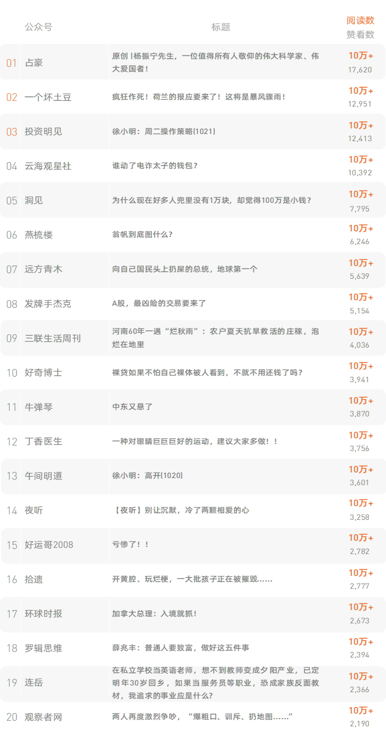 跳转原文请戳:《柳叶刀重磅!中国团队首次证实,将改写国际指南》 新榜榜单小程序版正式上线,榜单想看就看,更多热门内容也可登录新榜网站www.newrank.cn进行查询,点击「阅读原文」查看新榜指数算法说明。 新榜排行榜 newranklist