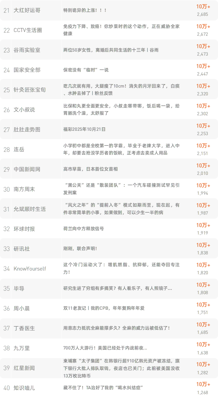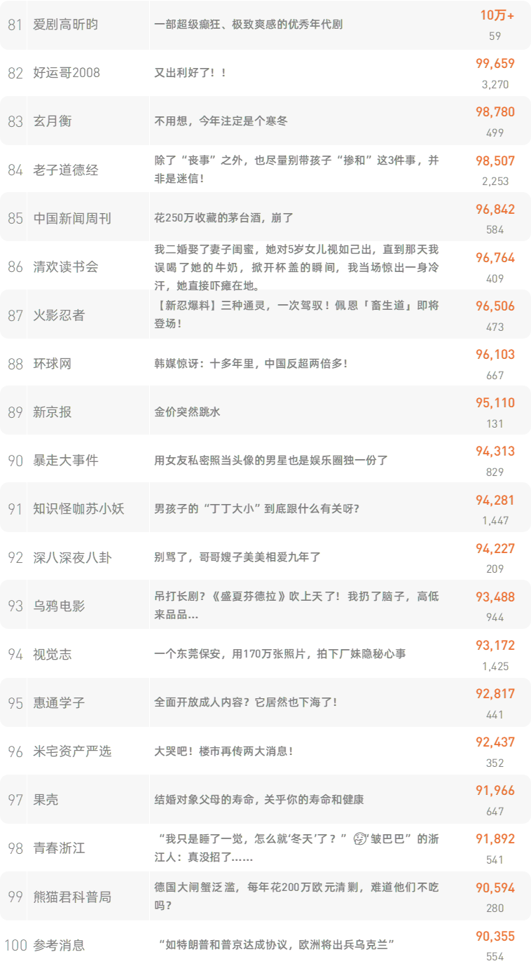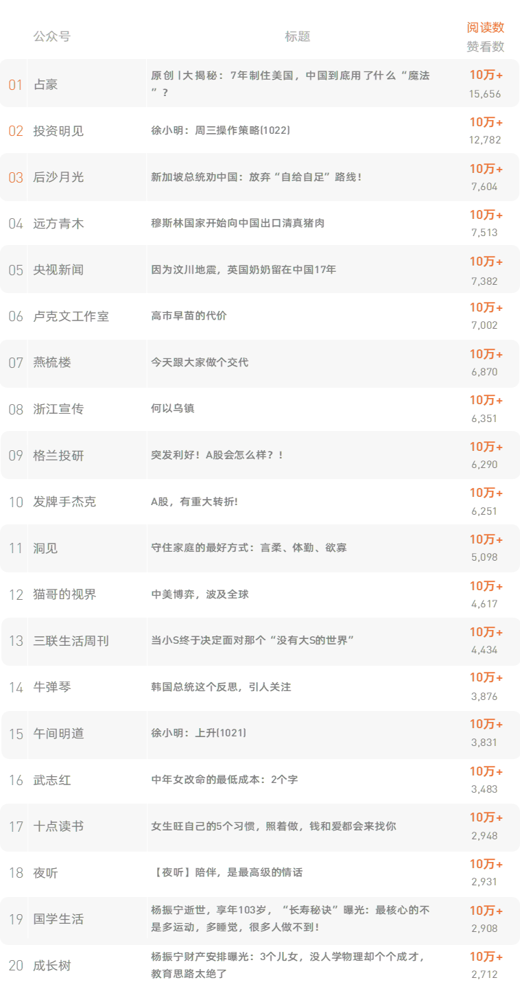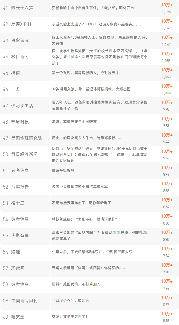 跳转原文请戳:《免疫力下降、致癌!你炒菜时的这个动作,正在威胁全家健康》 新榜榜单小程序版正式上线,榜单想看就看,更多热门内容也可登录新榜网站www.newrank.cn进行查询,点击「阅读原文」查看新榜指数算法说明。 新榜排行榜 newranklist