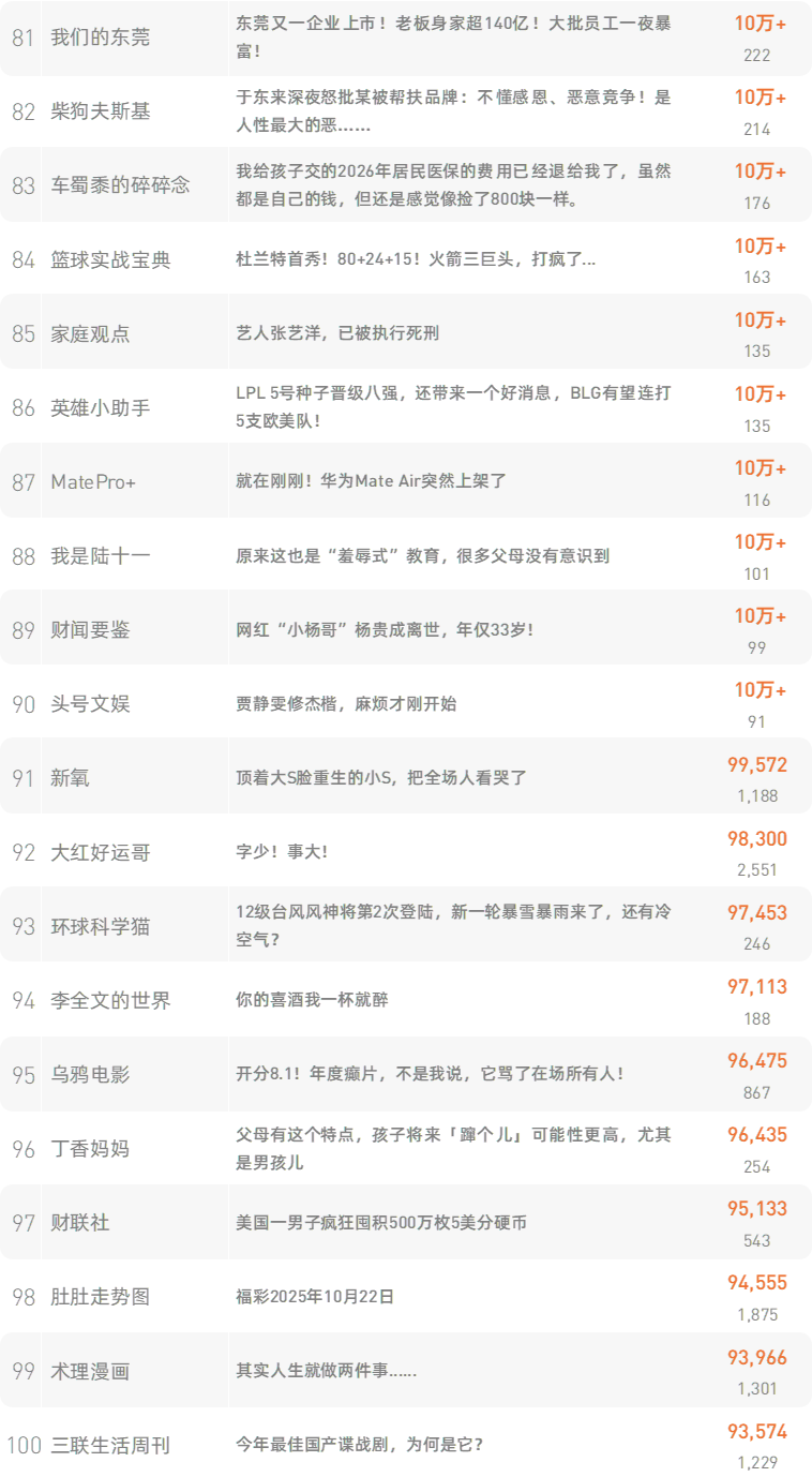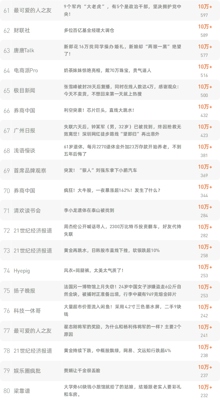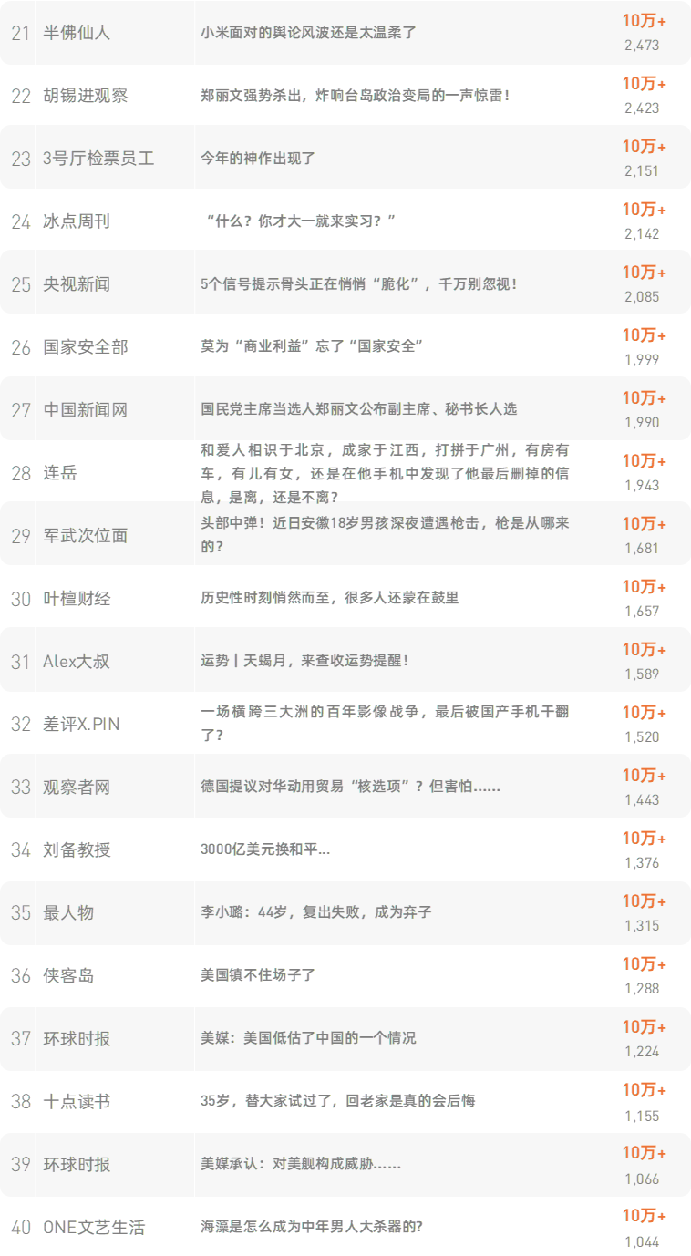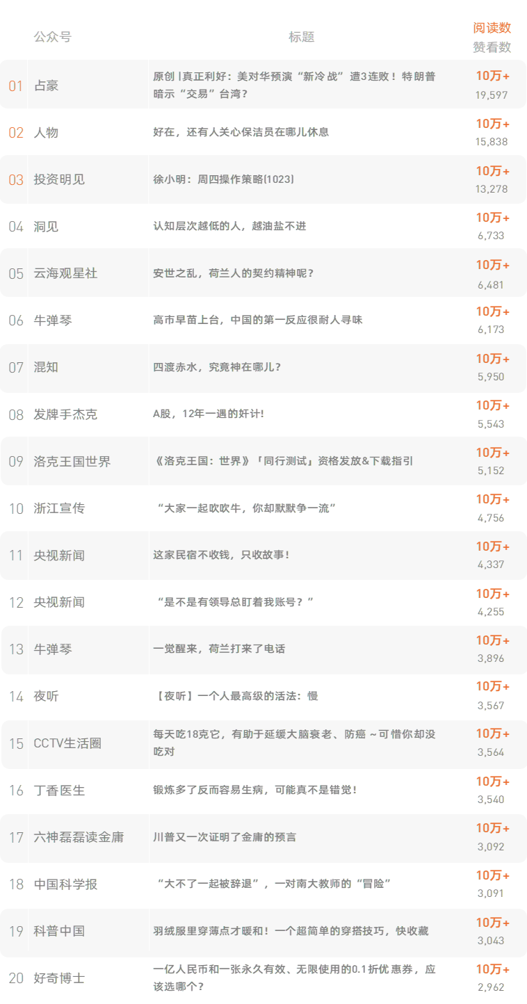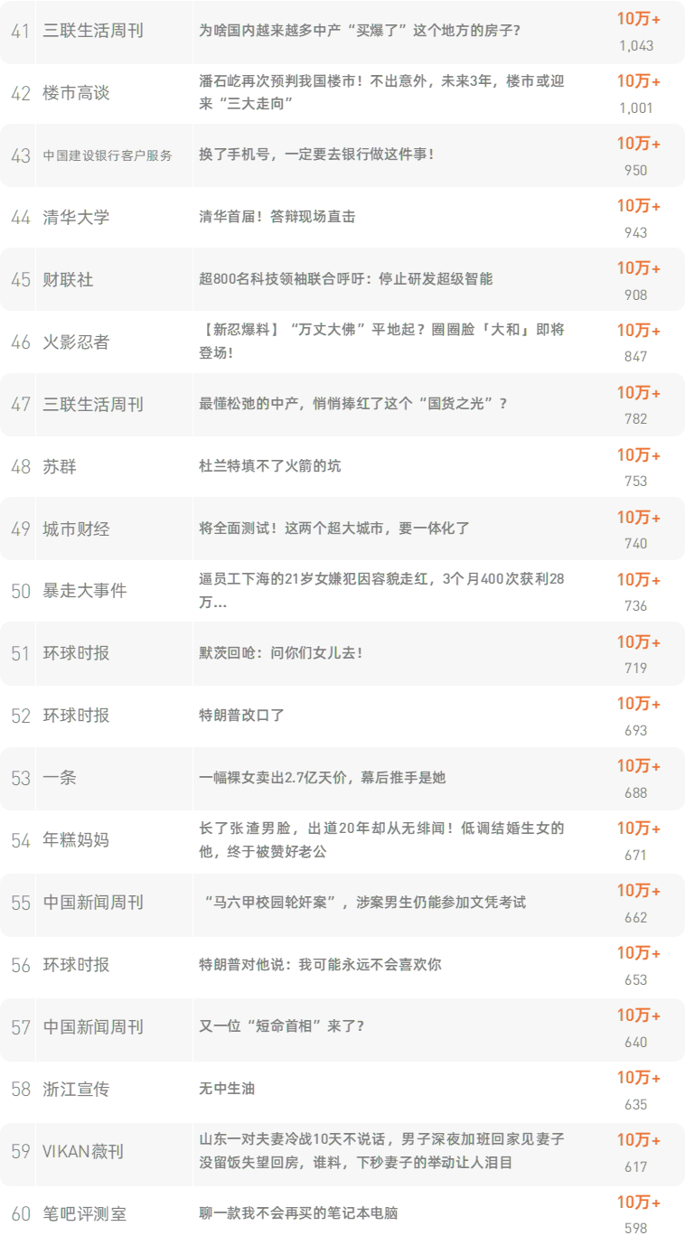 跳转原文请戳:《35岁,替大家试过了,回老家是真的会后悔》 新榜榜单小程序版正式上线,榜单想看就看,更多热门内容也可登录新榜网站www.newrank.cn进行查询,点击「阅读原文」查看新榜指数算法说明。 新榜排行榜 newranklist
