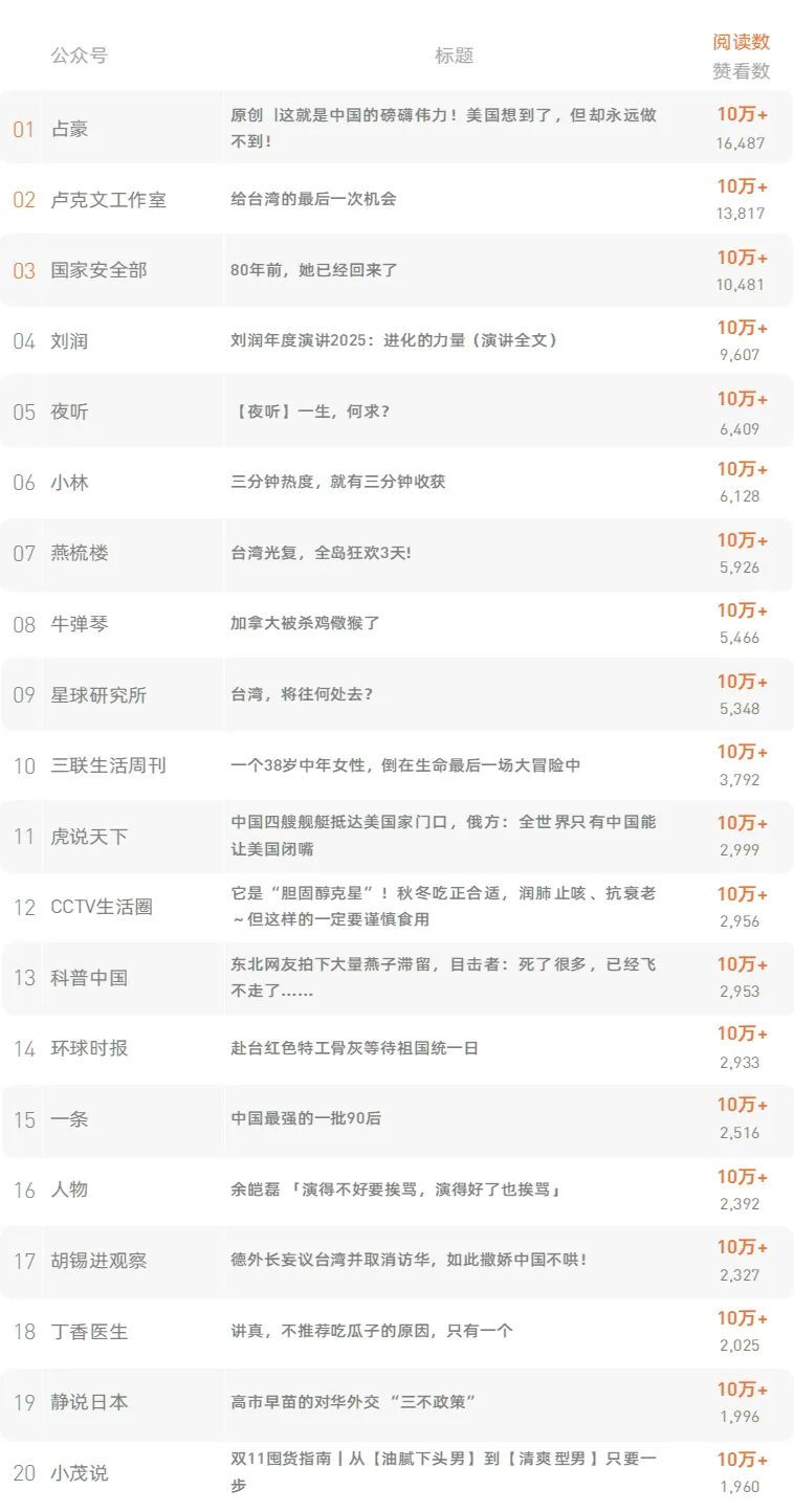 微信原创文章日榜 ,新榜首创出品