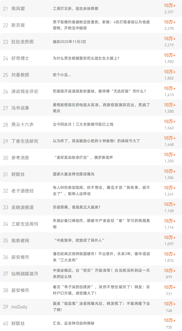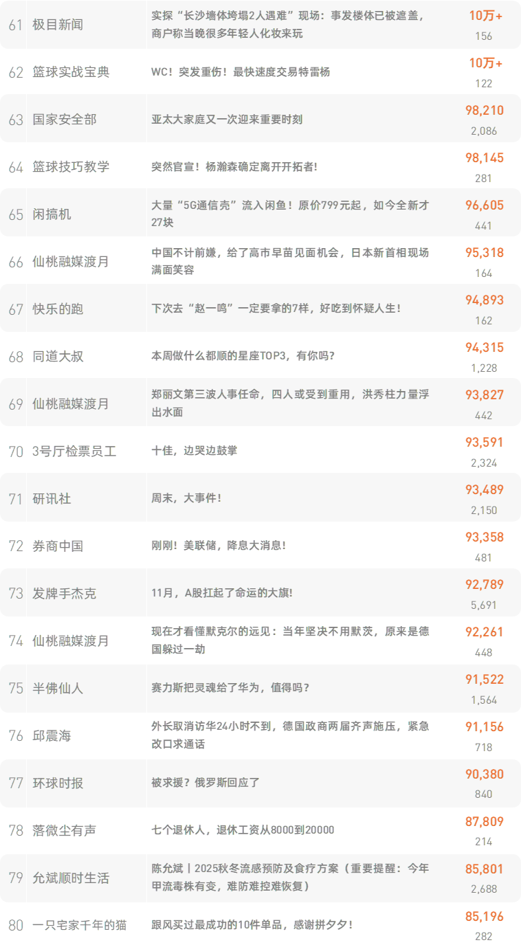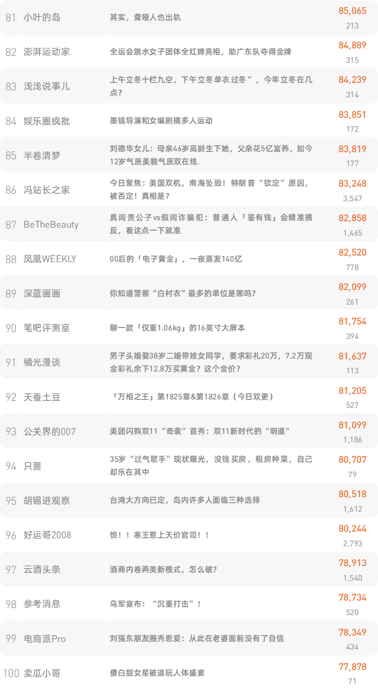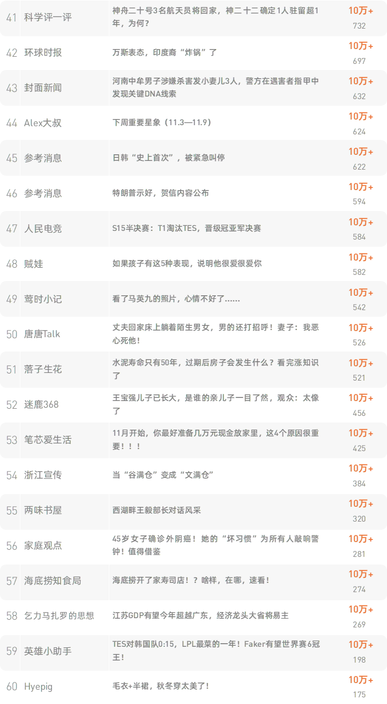 跳转原文请戳:《水泥寿命只有50年,过期后房子会发生什么?看完涨知识了》 新榜榜单小程序版正式上线,榜单想看就看,更多热门内容也可登录新榜网站www.newrank.cn进行查询,点击「阅读原文」查看新榜指数算法说明。 新榜排行榜 newranklist