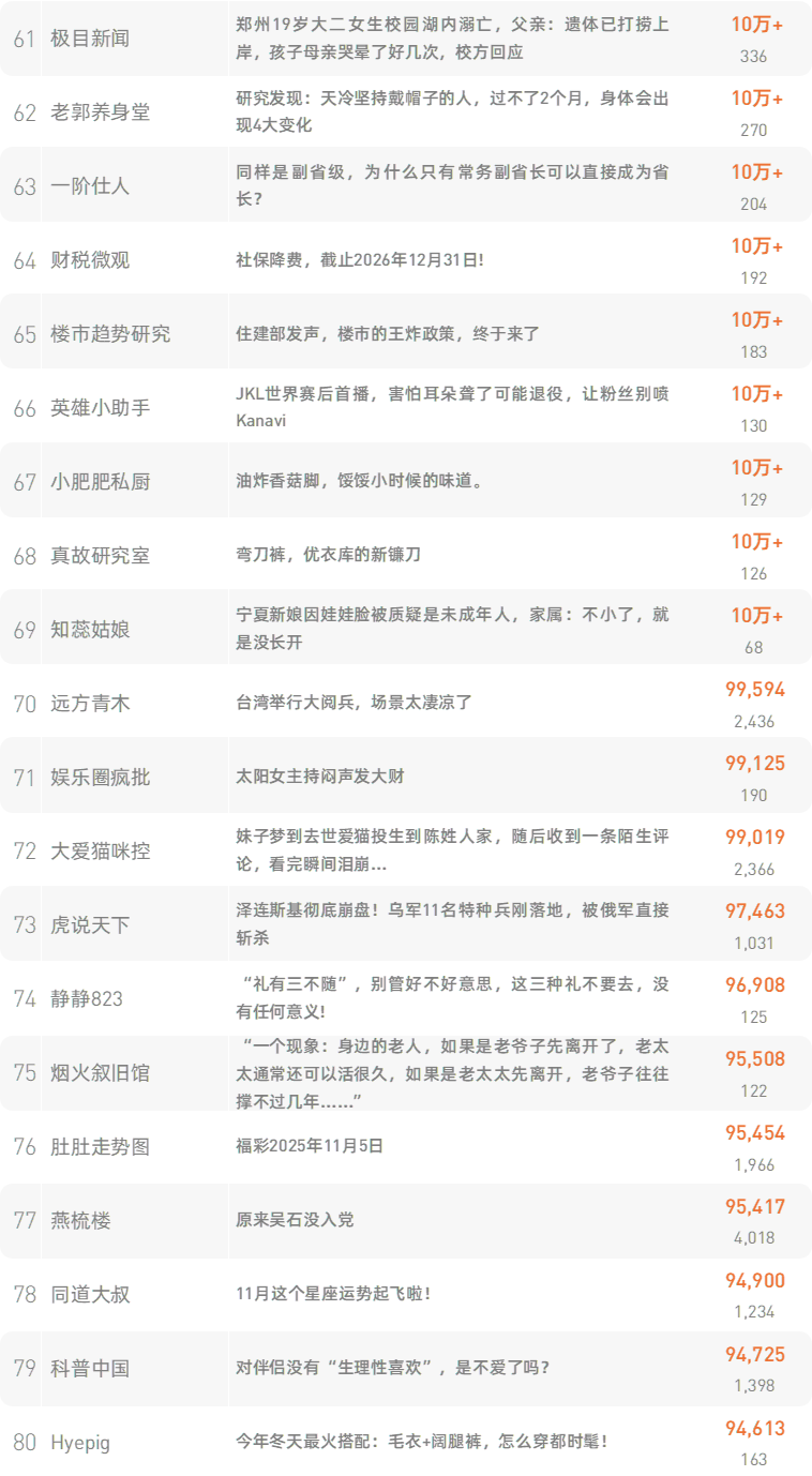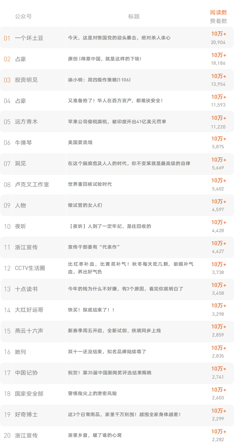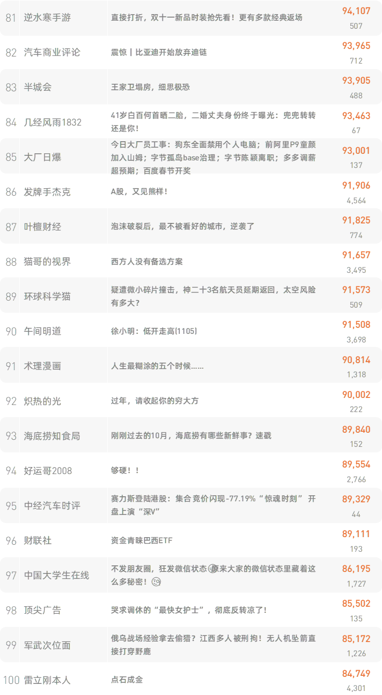 跳转原文请戳:《今年的钱为什么不好赚,有3个原因,看完你就明白了》 新榜榜单小程序版正式上线,榜单想看就看,更多热门内容也可登录新榜网站www.newrank.cn进行查询,点击「阅读原文」查看新榜指数算法说明。 新榜排行榜 newranklist