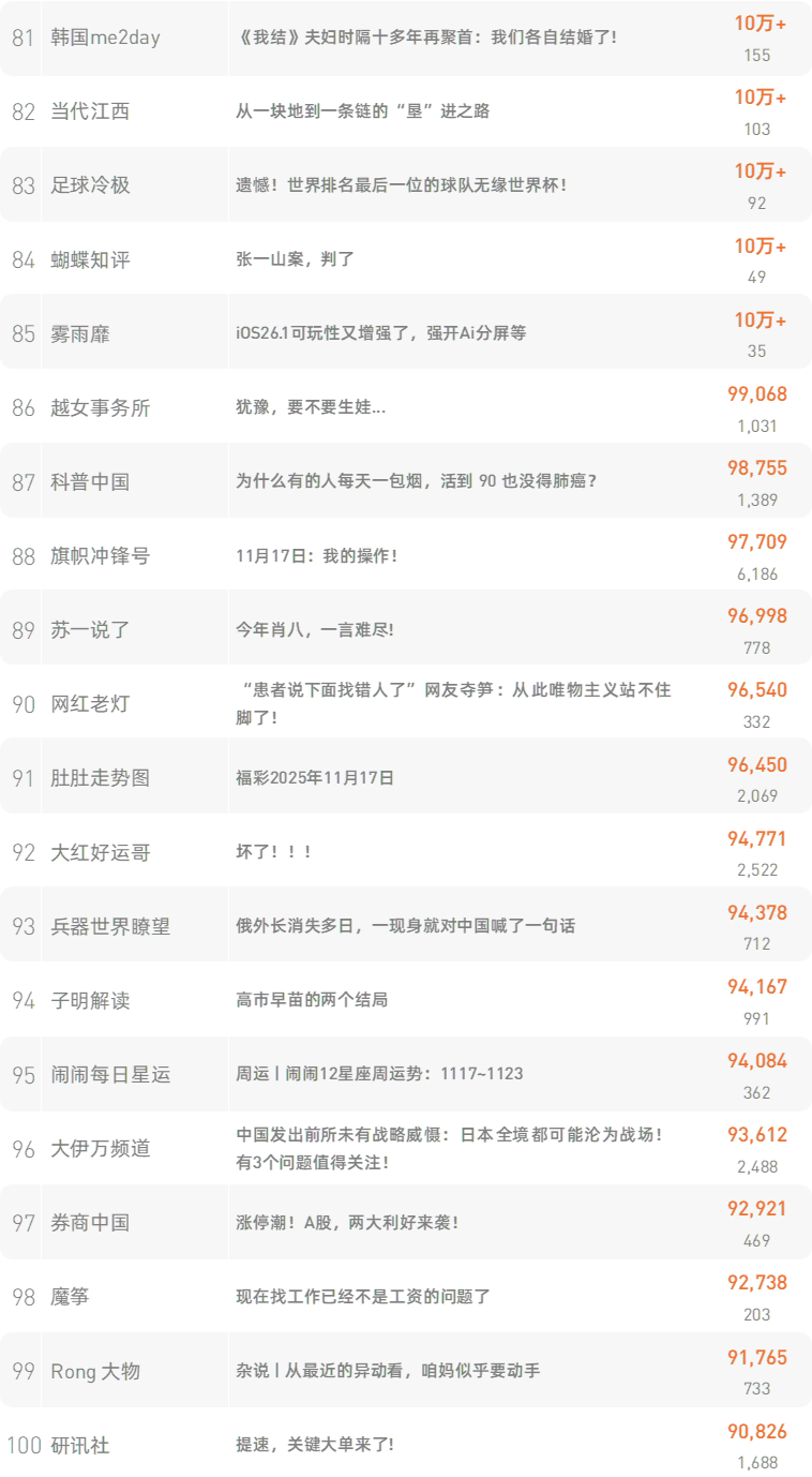 跳转原文请戳:《当孩子只会说「栓Q」和「包的」》 新榜榜单小程序版正式上线,榜单想看就看,更多热门内容也可登录新榜网站www.newrank.cn进行查询,点击「阅读原文」查看新榜指数算法说明。 新榜排行榜 newranklist