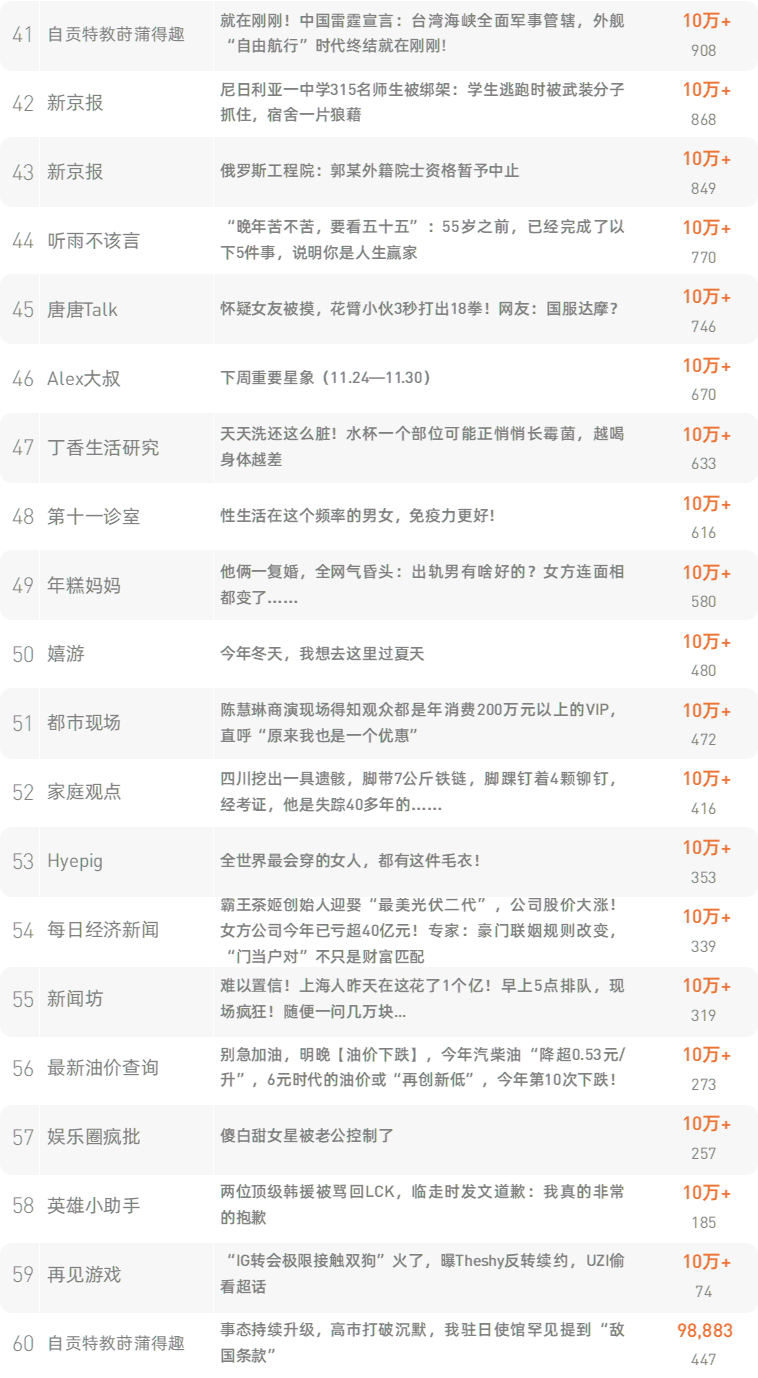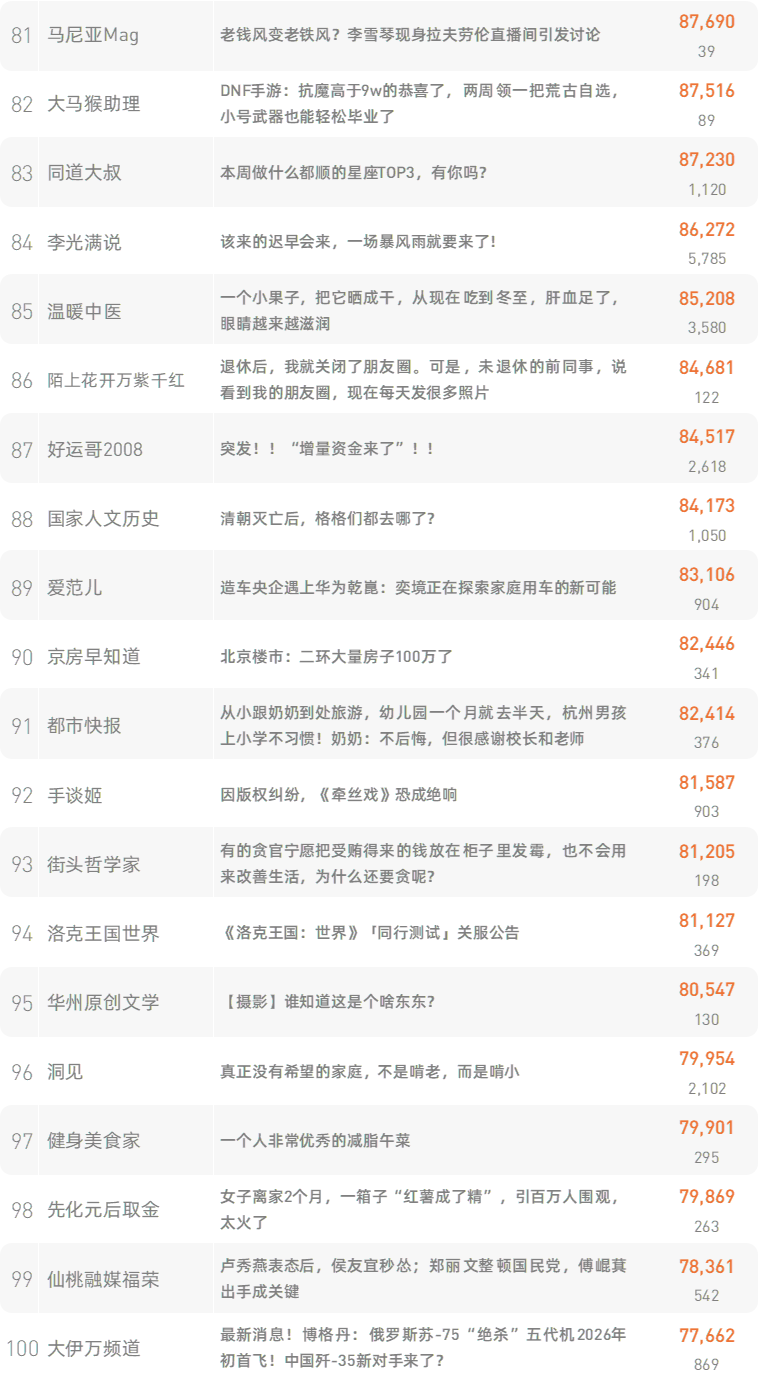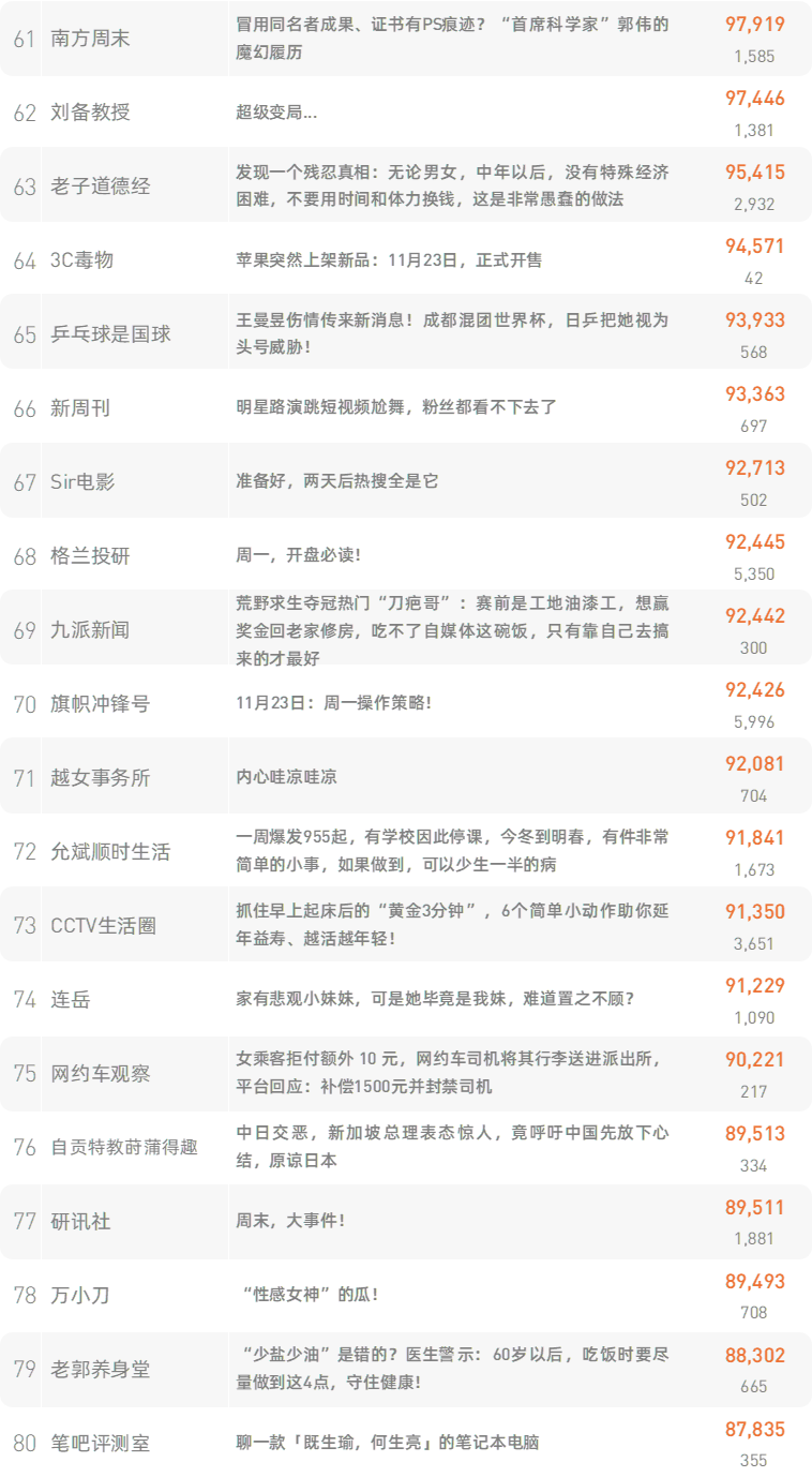 跳转原文请戳:《你永远吵不赢一个满脑子都是正确答案的人》新榜榜单小程序版正式上线,榜单想看就看,更多热门内容也可登录新榜网站www.newrank.cn进行查询,点击「阅读原文」查看新榜指数算法说明。新榜排行榜newranklist