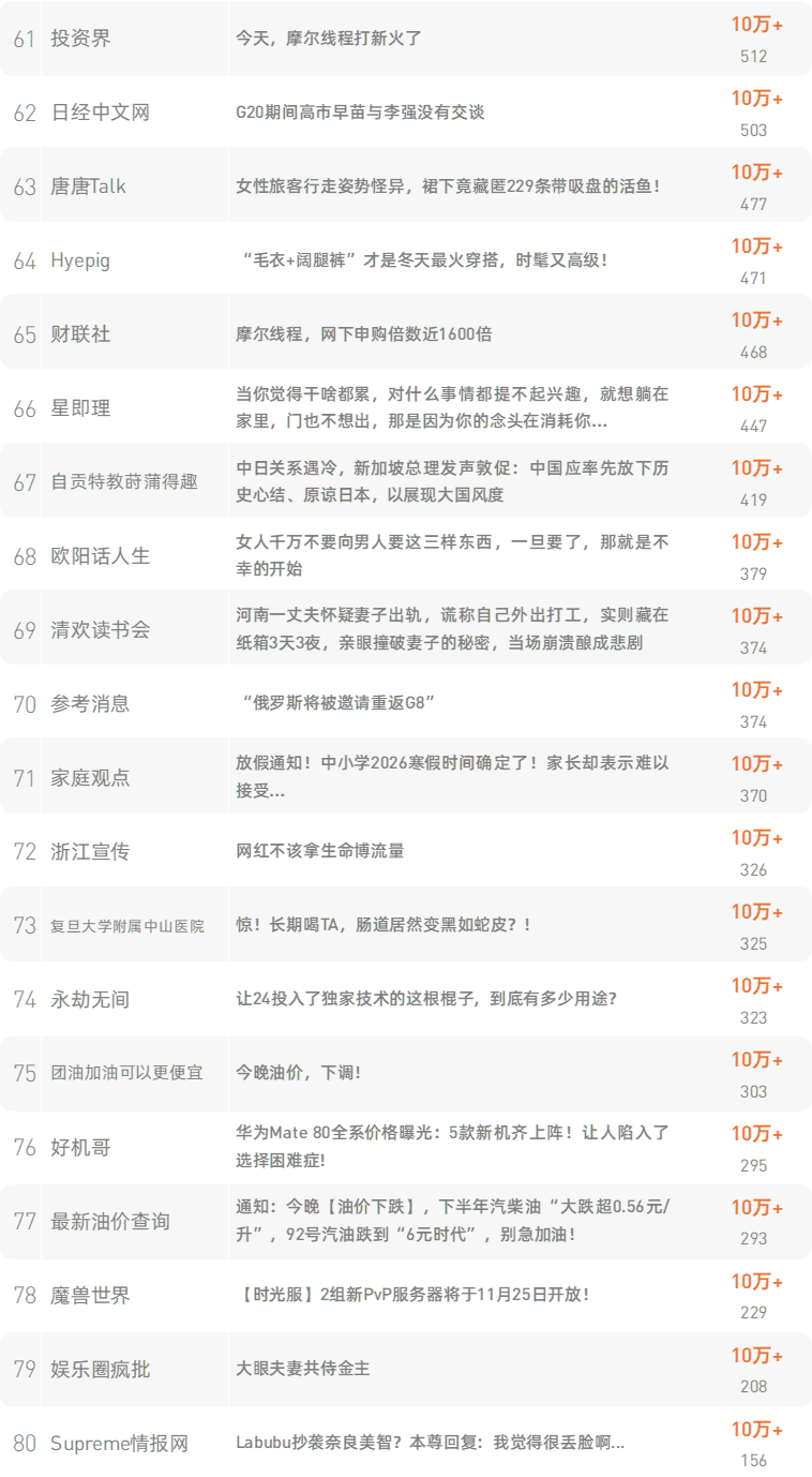 跳转原文请戳:《这种运动完全不累,还能哐哐减内脏脂肪!》新榜榜单小程序版正式上线,榜单想看就看,更多热门内容也可登录新榜网站www.newrank.cn进行查询,点击「阅读原文」查看新榜指数算法说明。新榜排行榜newranklist