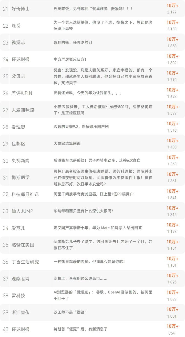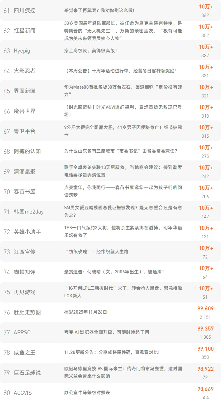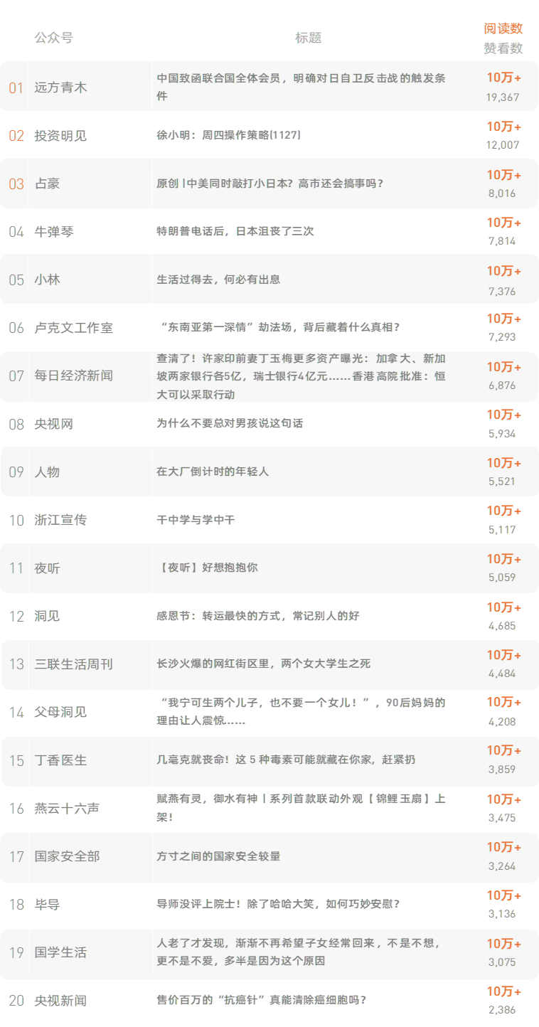 跳转原文请戳:《导师没评上院士!除了哈哈大笑,如何巧妙安慰?》新榜榜单小程序版正式上线,榜单想看就看,更多热门内容也可登录新榜网站www.newrank.cn进行查询,点击「阅读原文」查看新榜指数算法说明。新榜排行榜newranklist