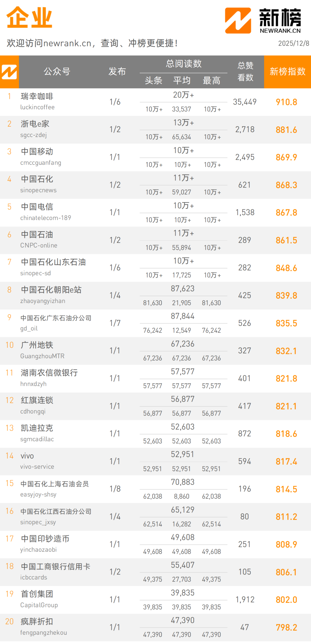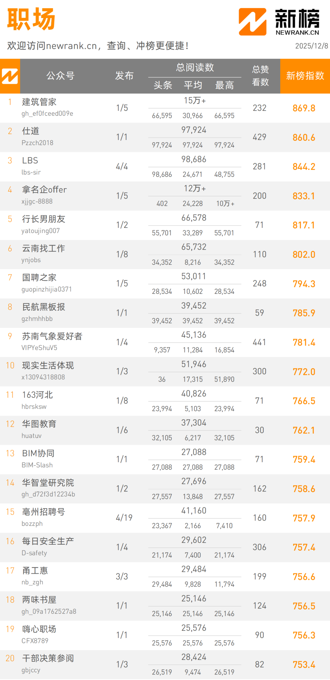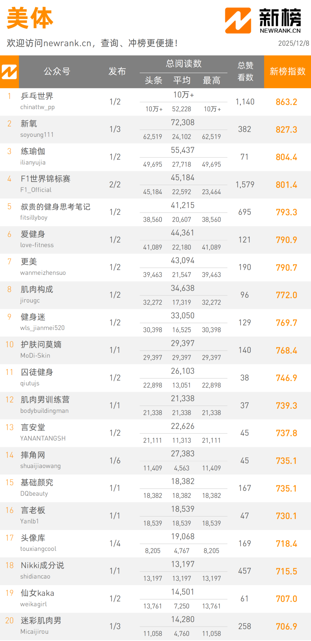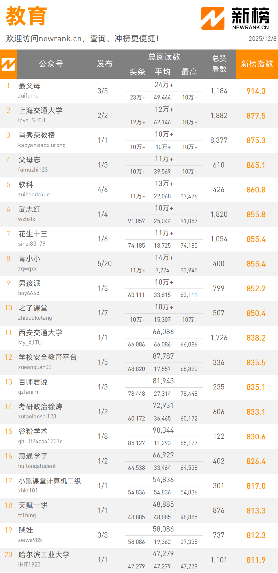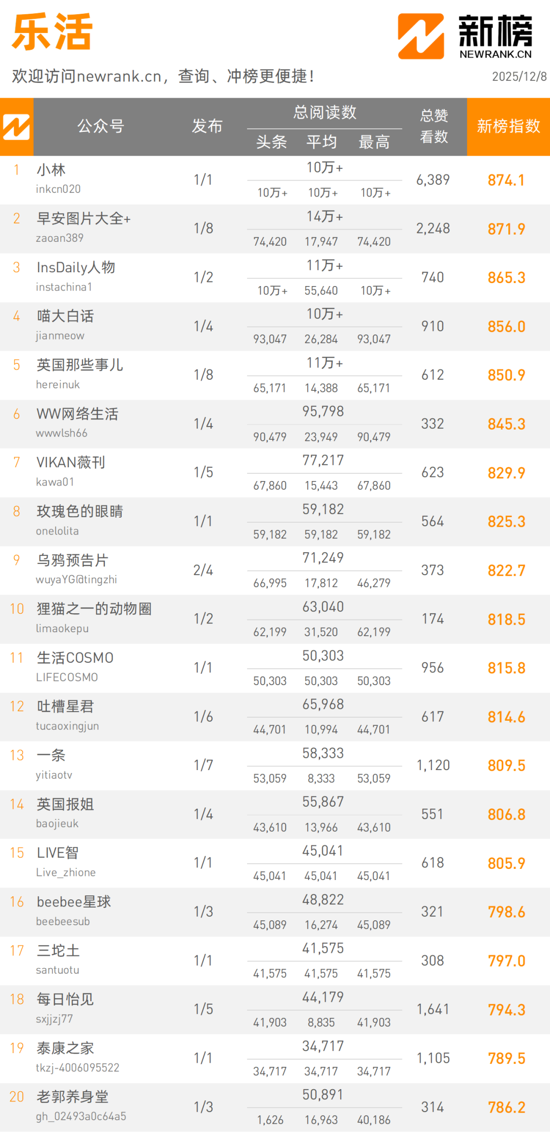 12月8日微信公众号影响力排行榜 | 新榜发布 | 新榜出品