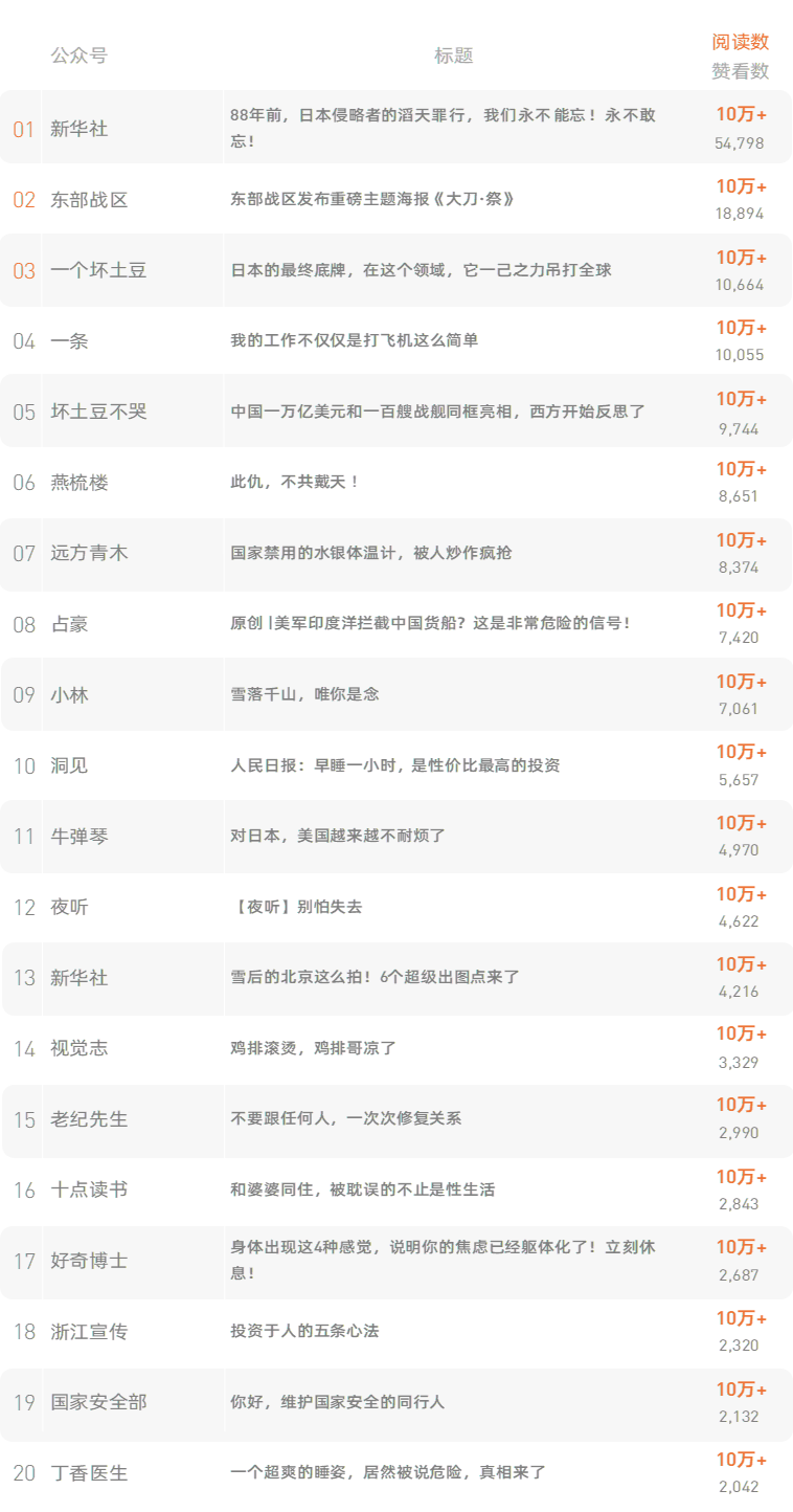微信原创文章日榜 ,新榜首创出品