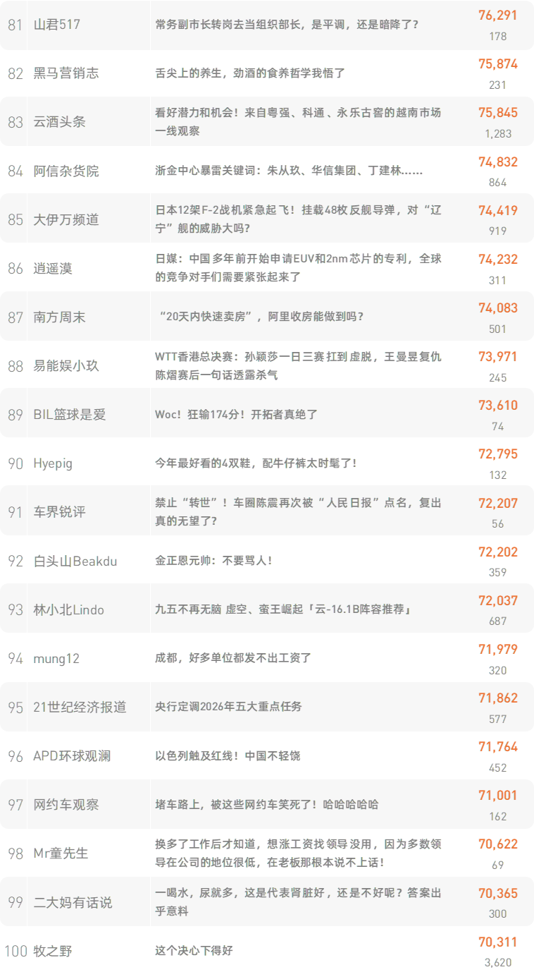 新榜榜单