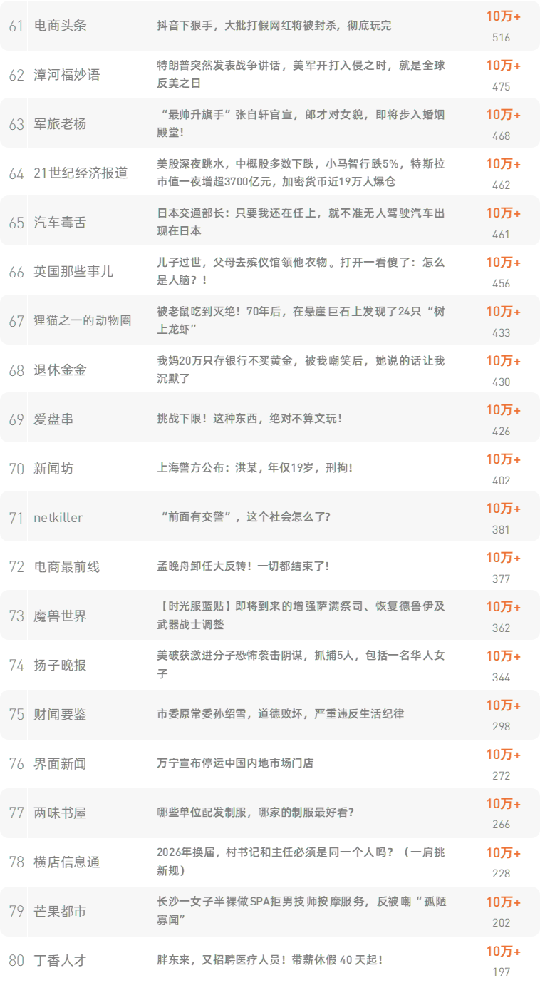 跳转原文请戳:《95后,一年5轮融资,被雷军、蚂蚁追着投的天才少年》新榜榜单小程序版正式上线,榜单想看就看,更多热门内容也可登录新榜网站www.newrank.cn进行查询,点击「阅读原文」查看新榜指数算法说明。新榜排行榜newranklist