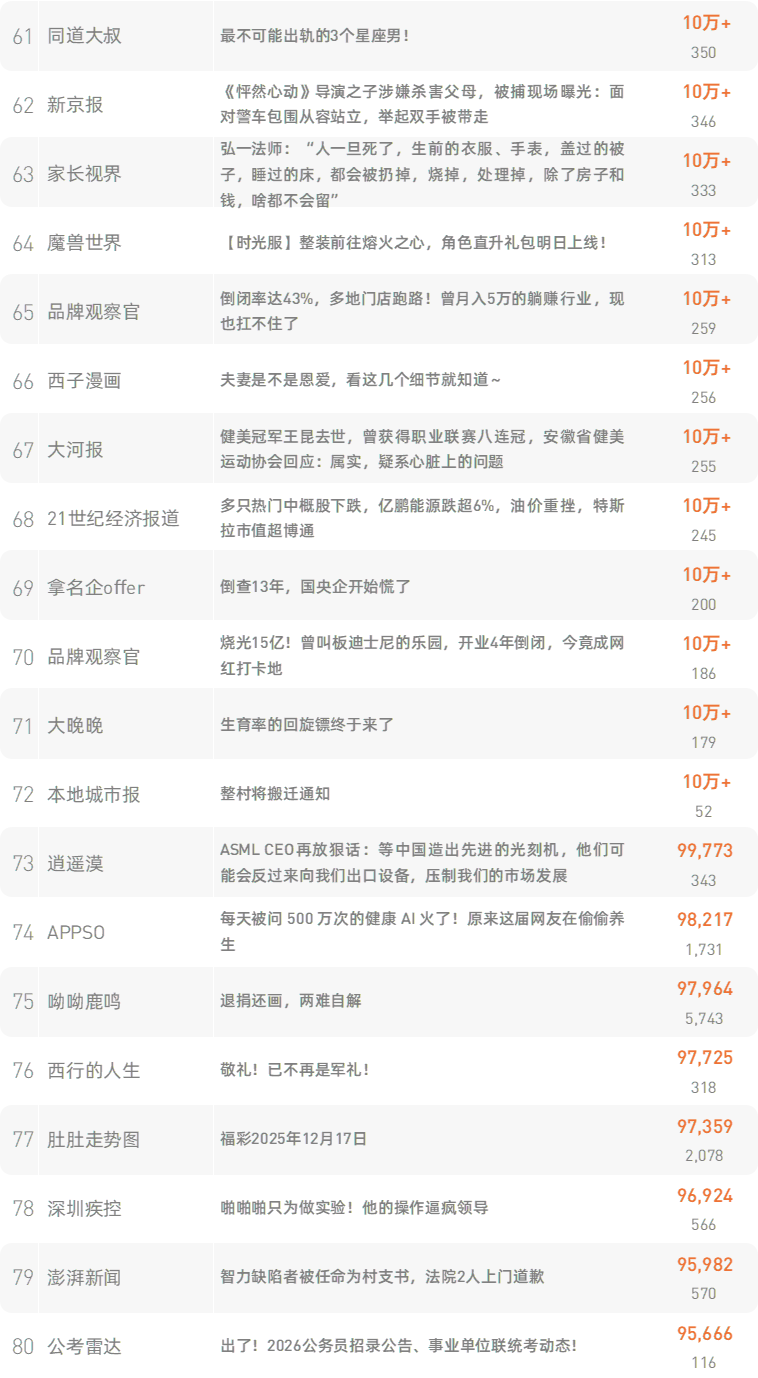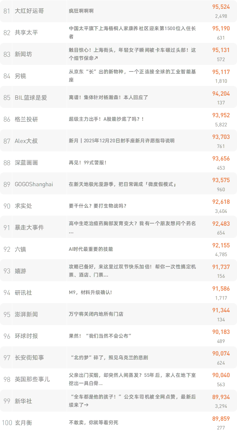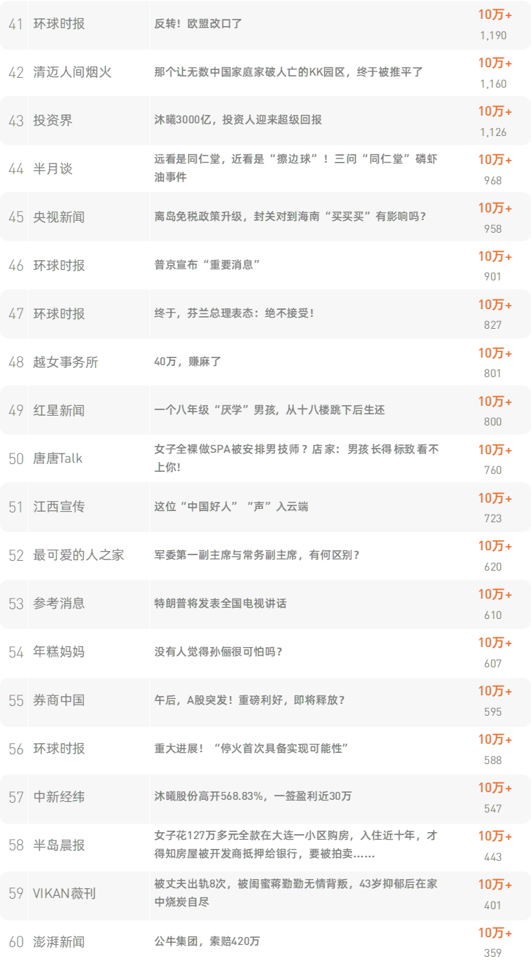 跳转原文请戳:《蜜雪冰城生怕美国人吃到一点甜头啊》新榜榜单小程序版正式上线,榜单想看就看,更多热门内容也可登录新榜网站www.newrank.cn进行查询,点击「阅读原文」查看新榜指数算法说明。新榜排行榜newranklist