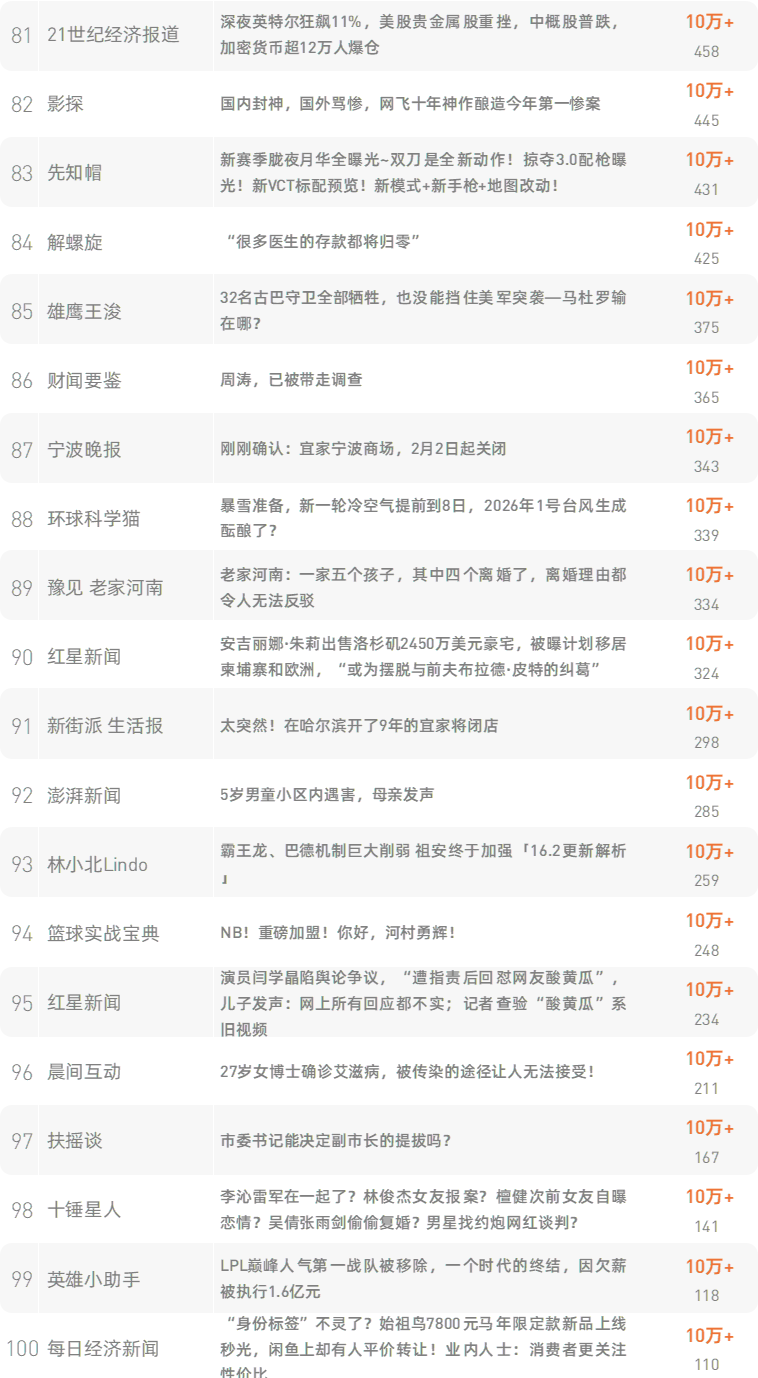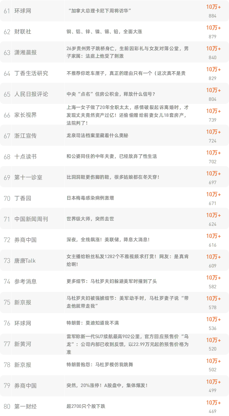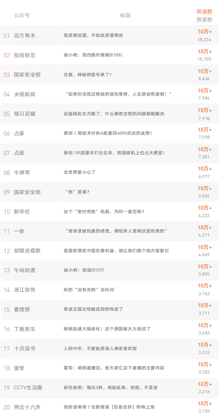 跳转原文请戳:《公司年会上,不可描述的事情越来越多了》新榜榜单小程序版正式上线,榜单想看就看,更多热门内容也可登录新榜网站www.newrank.cn进行查询,点击「阅读原文」查看新榜指数算法说明。新榜排行榜newranklist