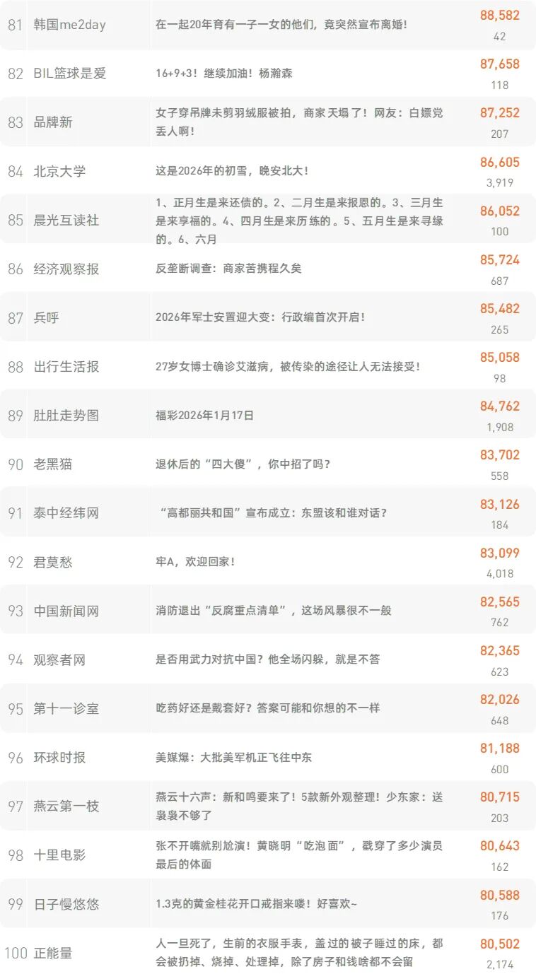 新榜榜单