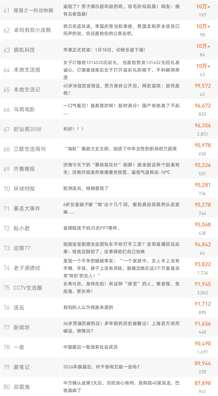 跳转原文请戳:《外国人涌入中国看病,是一件好事吗?》新榜榜单小程序版正式上线,榜单想看就看,更多热门内容也可登录新榜网站www.newrank.cn进行查询,点击「阅读原文」查看新榜指数算法说明。新榜排行榜newranklist