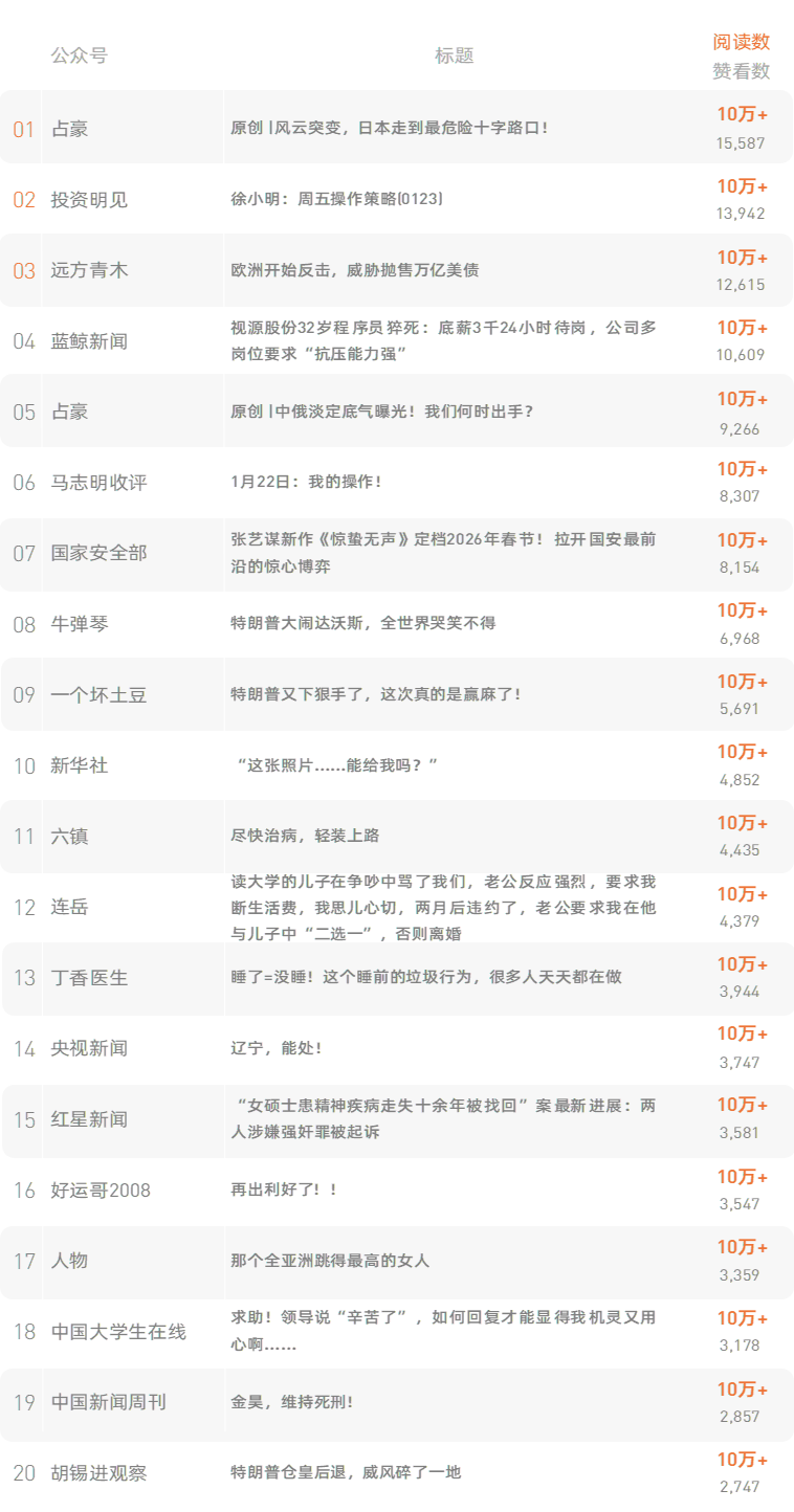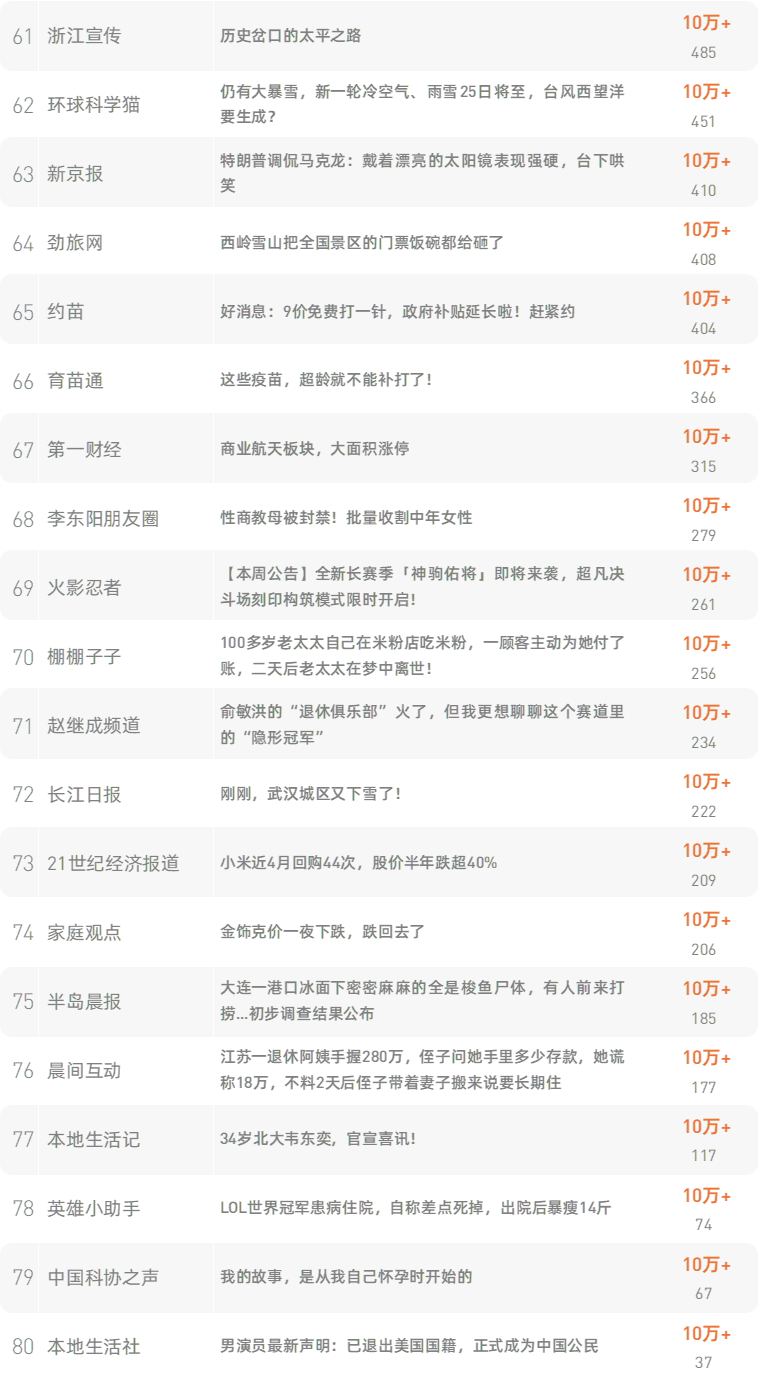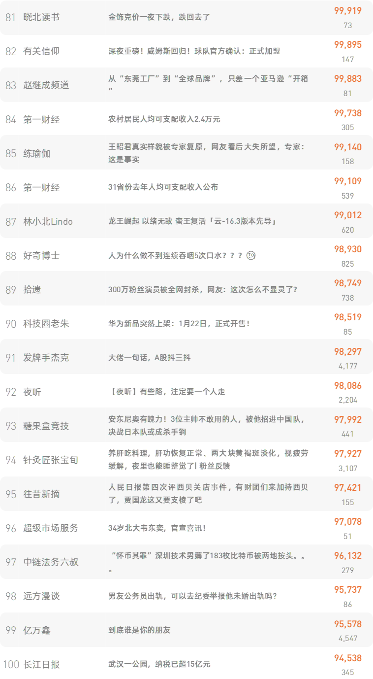 跳转原文请戳:《膝盖最怕这块肌肉变弱!很多爸妈都不达标,2 个动作速救》新榜榜单小程序版正式上线,榜单想看就看,更多热门内容也可登录新榜网站www.newrank.cn进行查询,点击「阅读原文」查看新榜指数算法说明。新榜排行榜newranklist